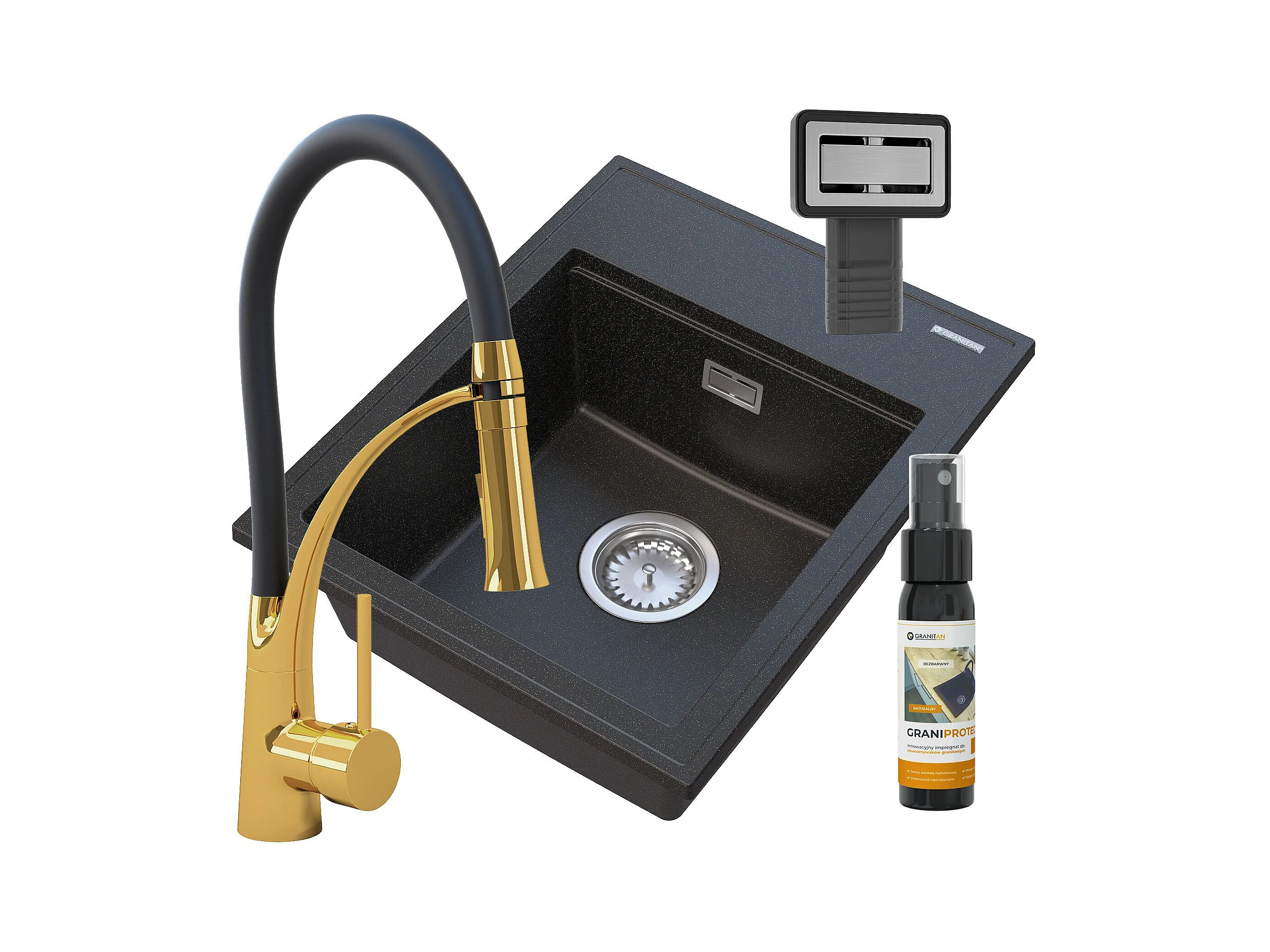 ÉVIER EN GRANIT NOIR MOUCHETÉ D'OR ROBINETTERIE ALOR