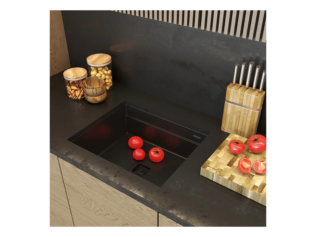 ÉVIER EN GRANIT NOIR SOUS PLAN SIPHON SQUARE SET EPIR 60