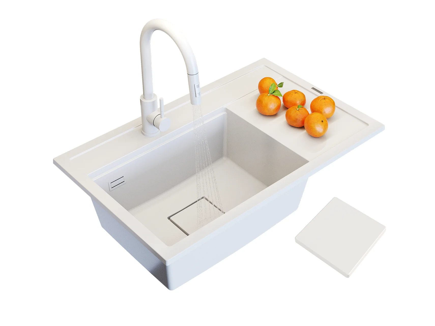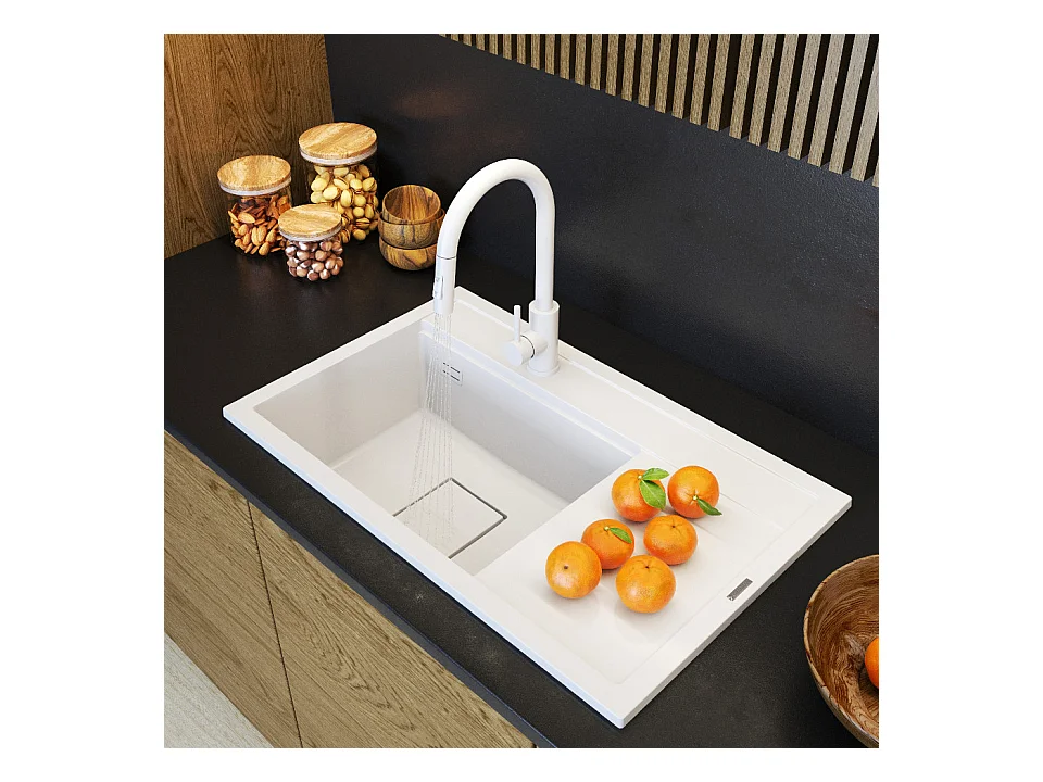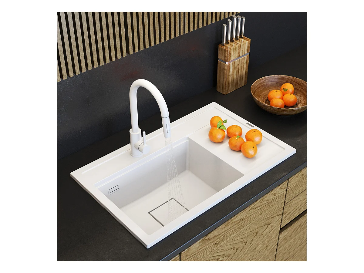ÉVIER EN GRANIT ROBINET DE CUISINE BLANC CAPUCHON ENSEMBLE MODERNE RENDO