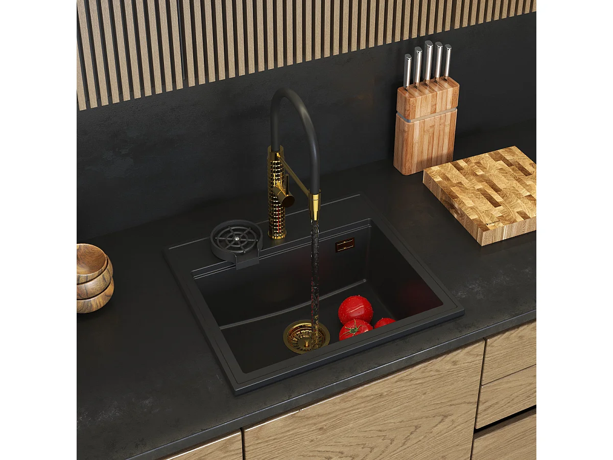 ÉVIER EN GRANIT ROBINET DE CUISINE NOIR LAVE-LINGE SIPHON OR SET FOXAL