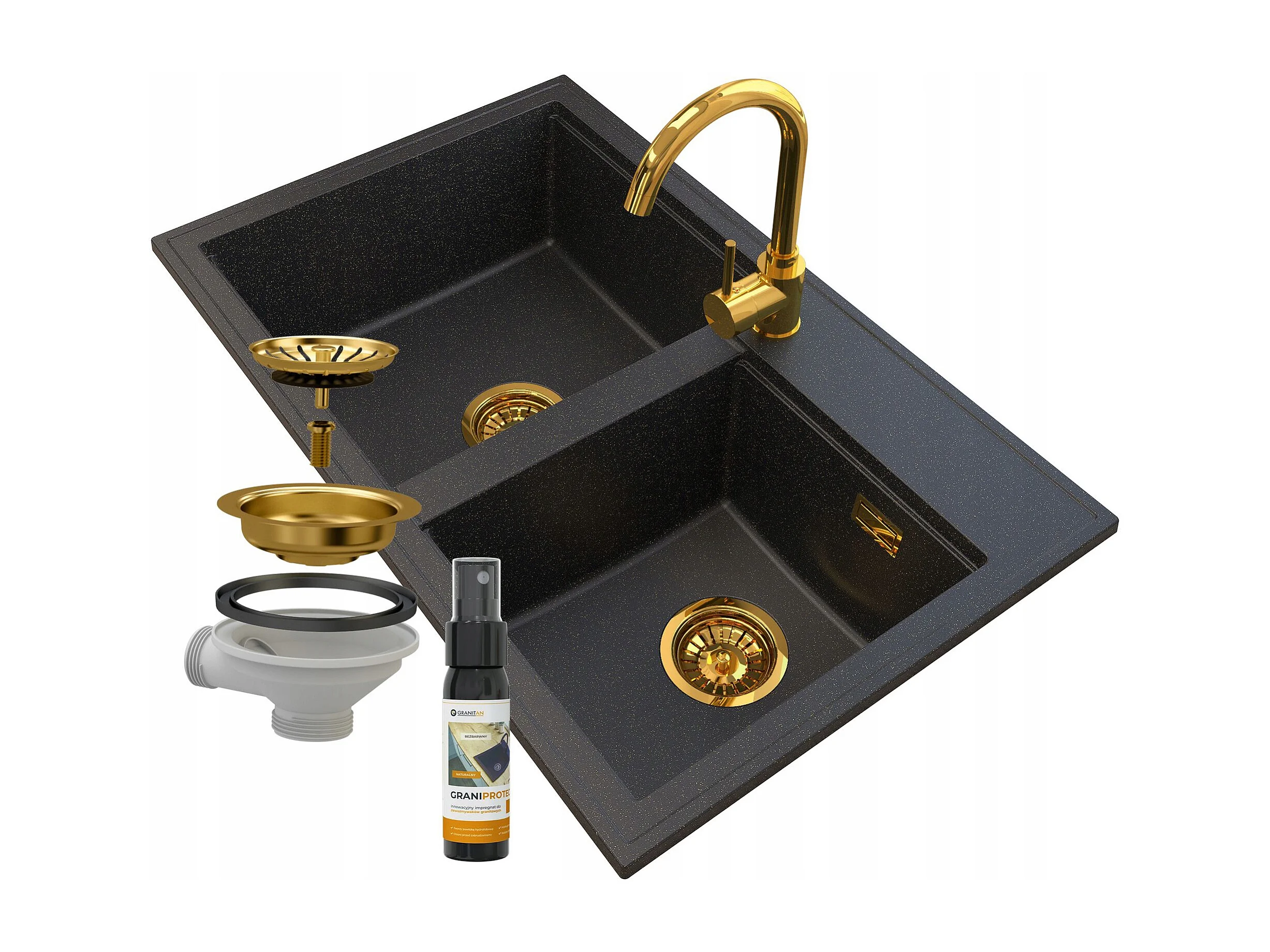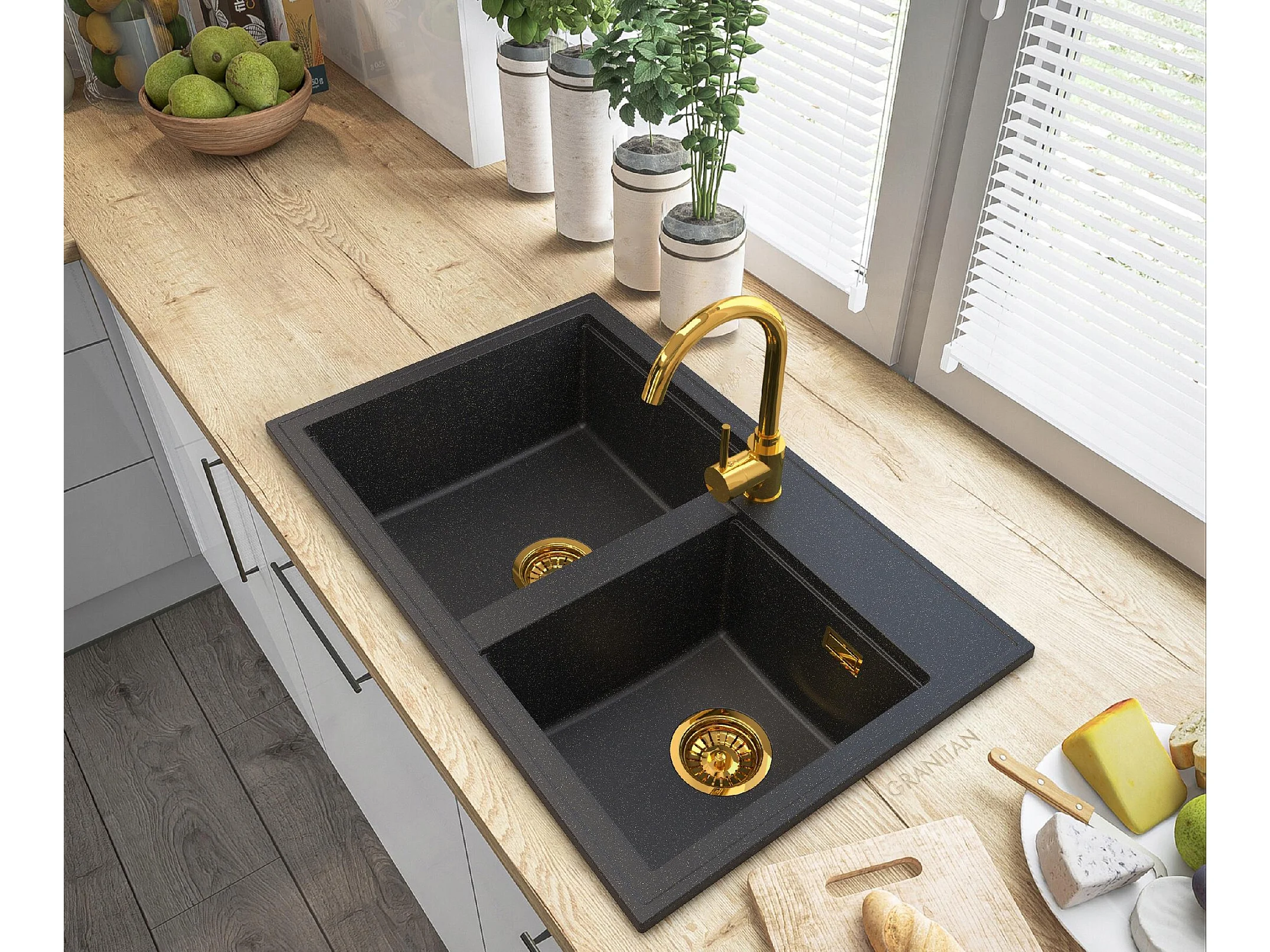 ÉVIER EN GRANIT ROBINET SIPHON DORÉ HECTOR DORÉ