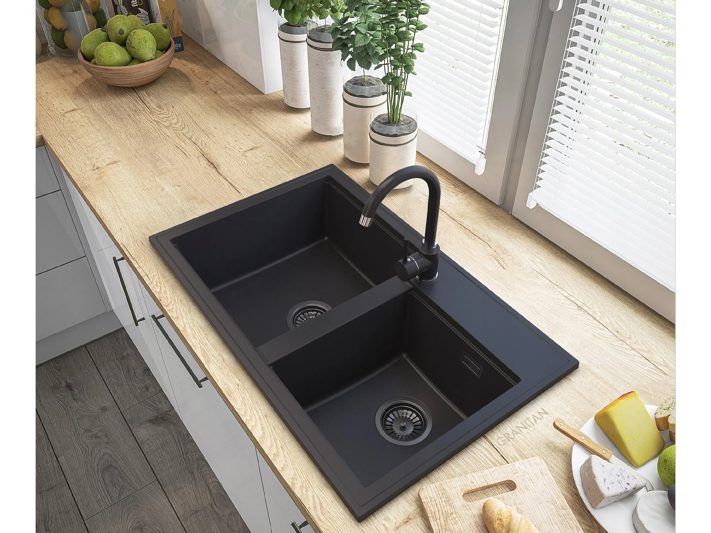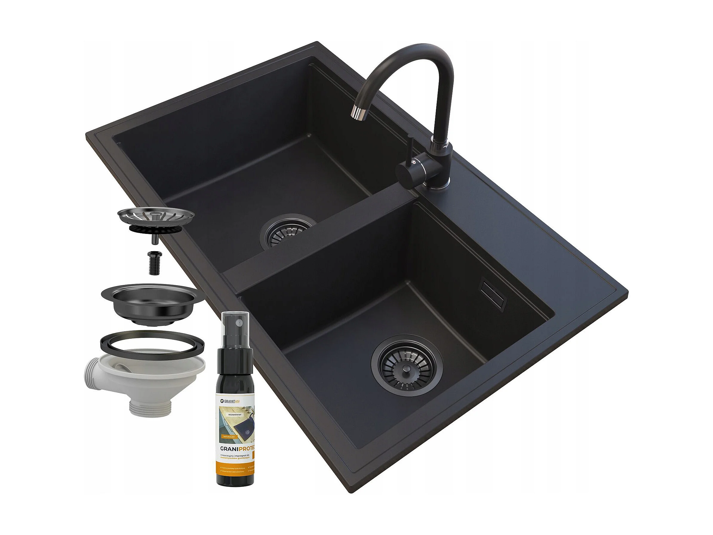 ÉVIER EN GRANIT ROBINET SIPHON NOIR HECTOR NOIR