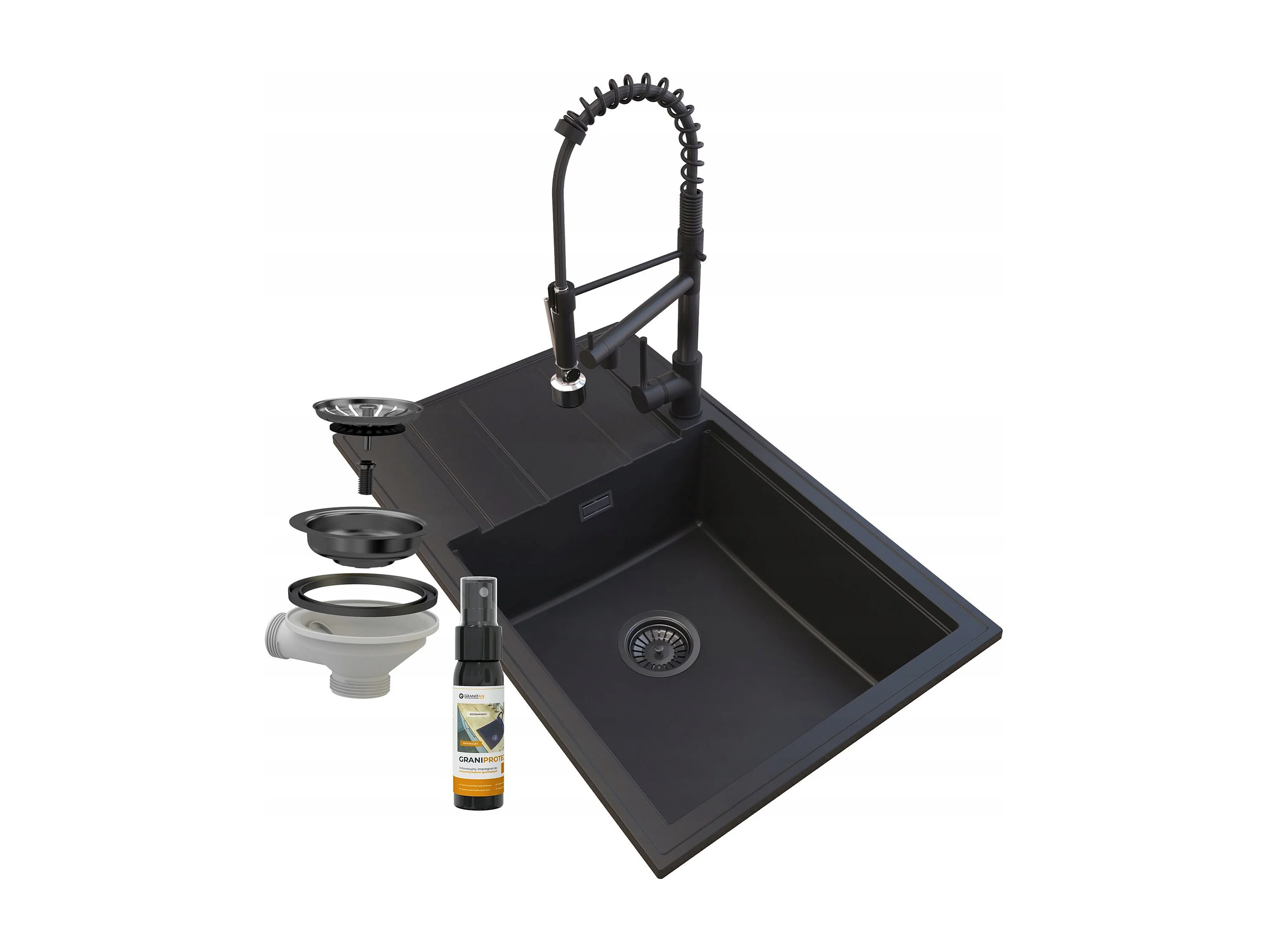 ÉVIER EN GRANIT ROBINET SIPHON NOIR SPIRALE LOUIS