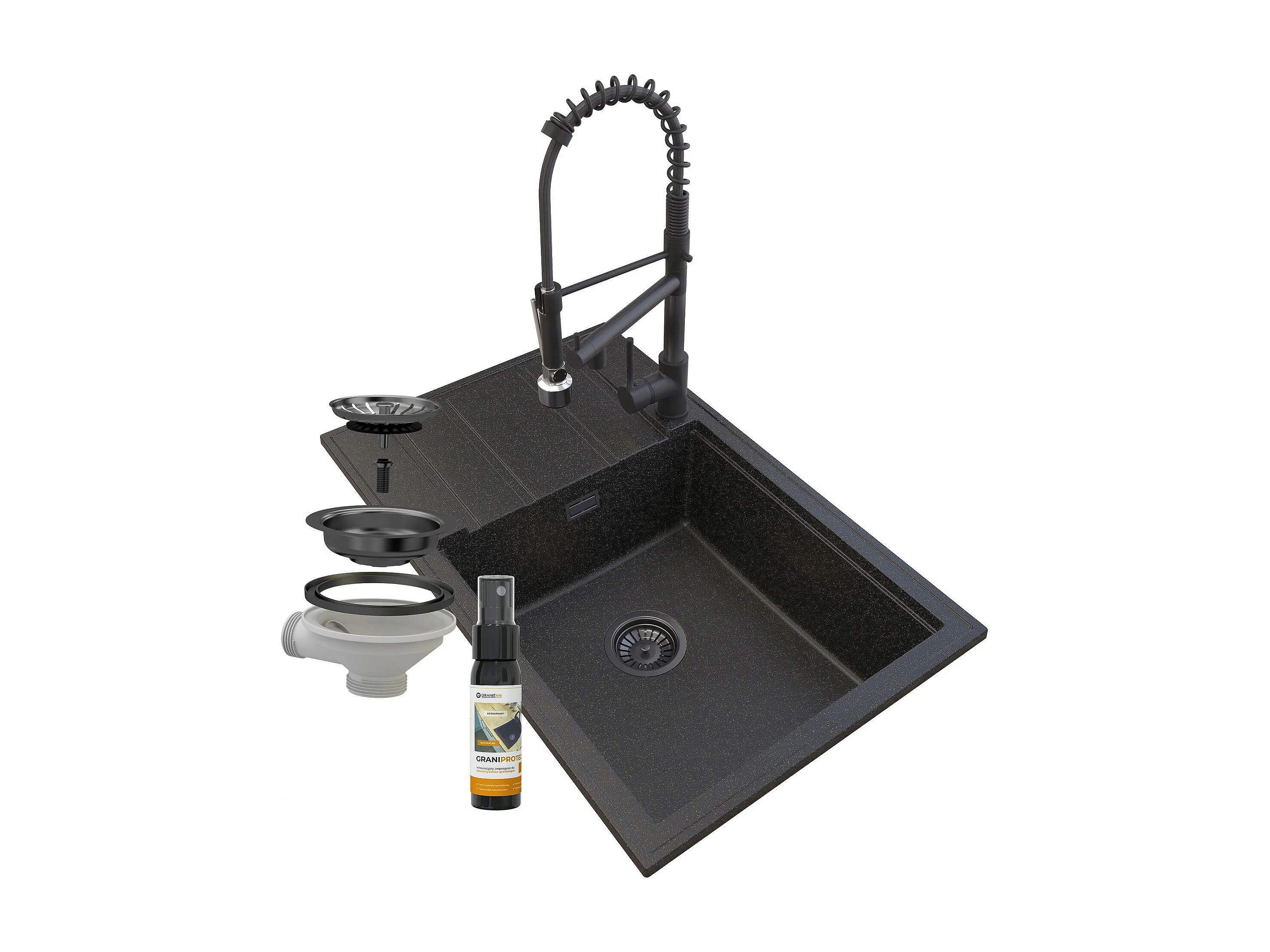 ÉVIER EN GRANIT ROBINET SIPHON OR SPIRALE LOUIS