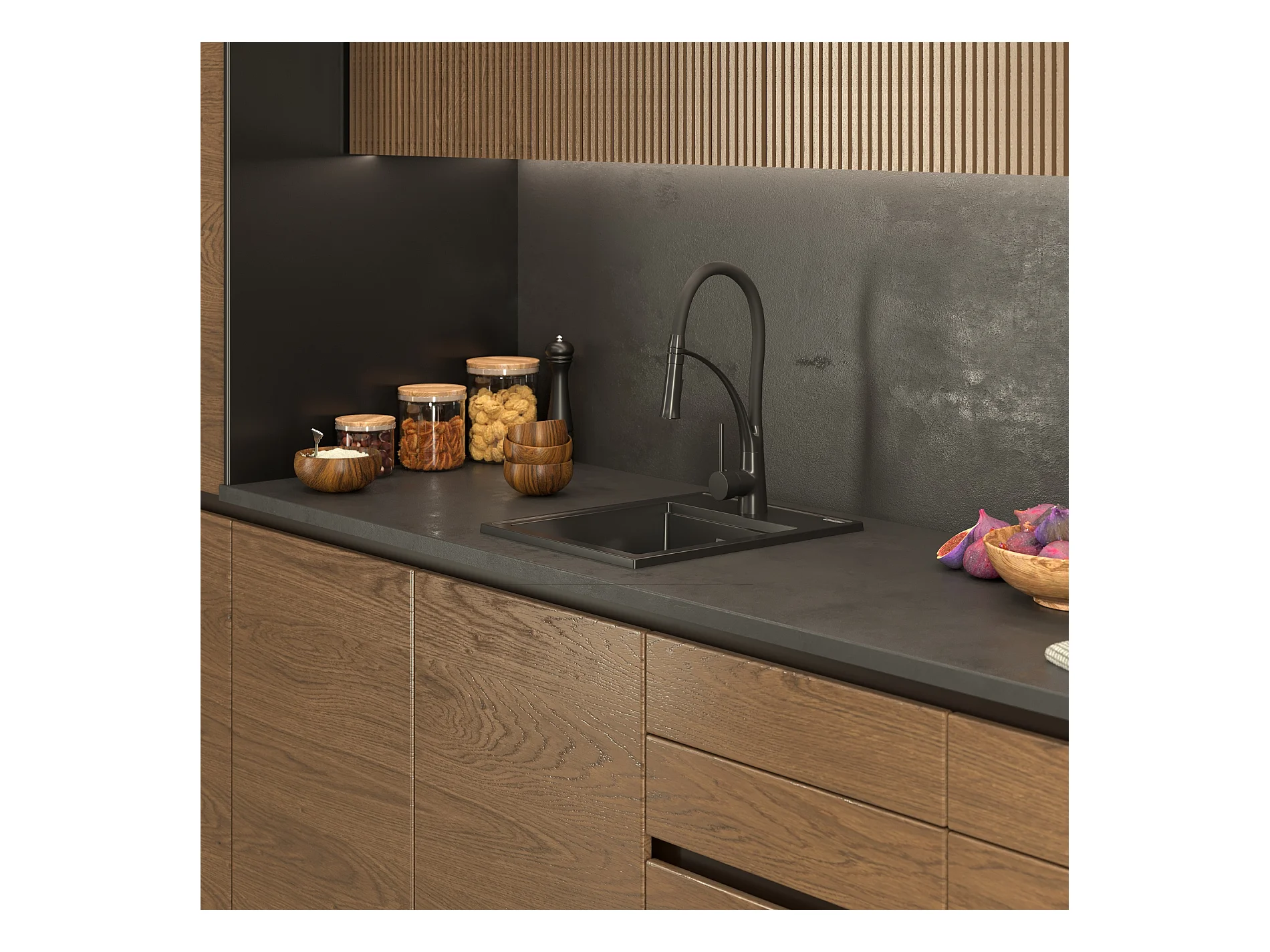 ÉVIER EN GRANIT ROBINETTERIE NOIRE ALOR