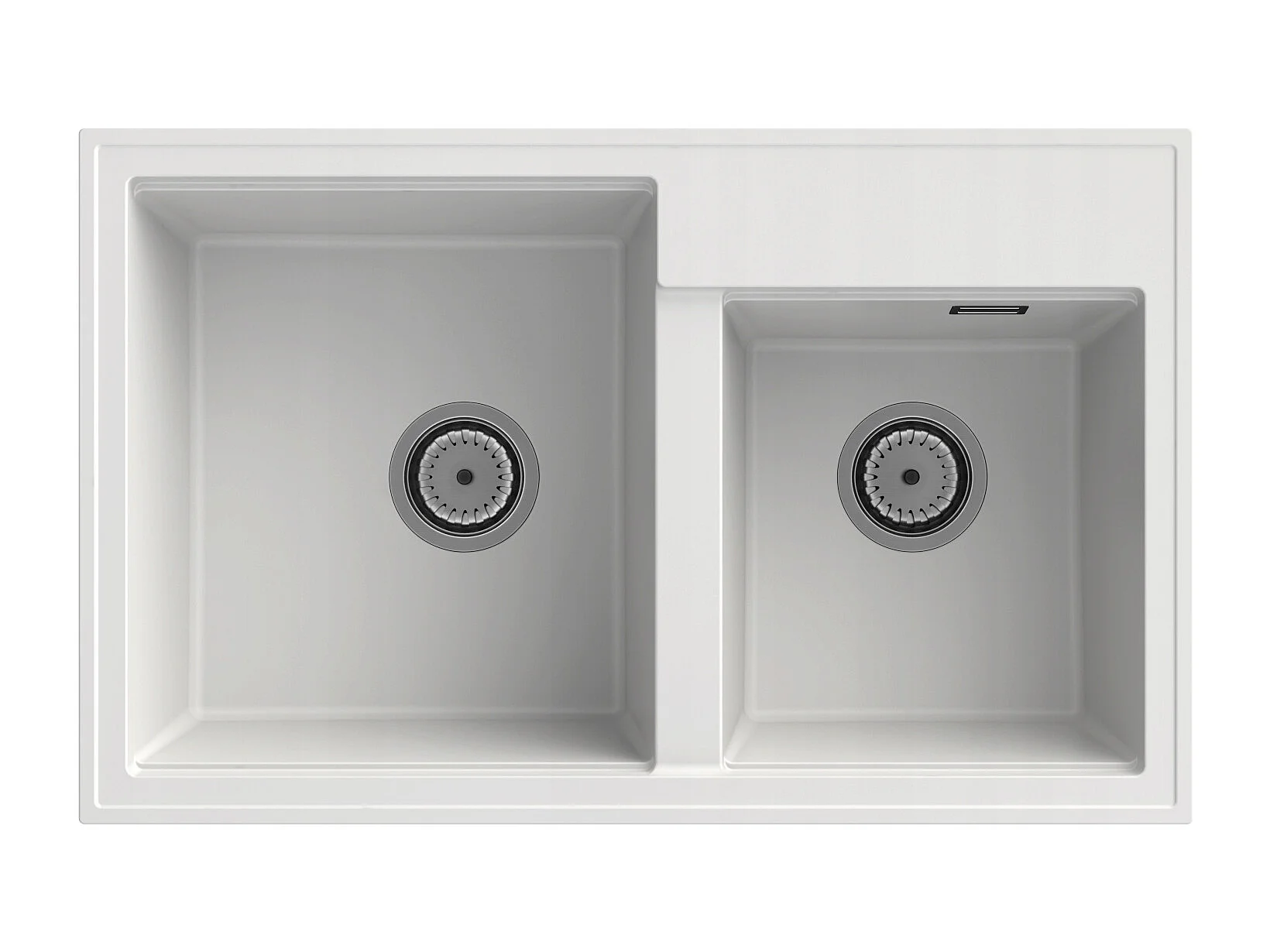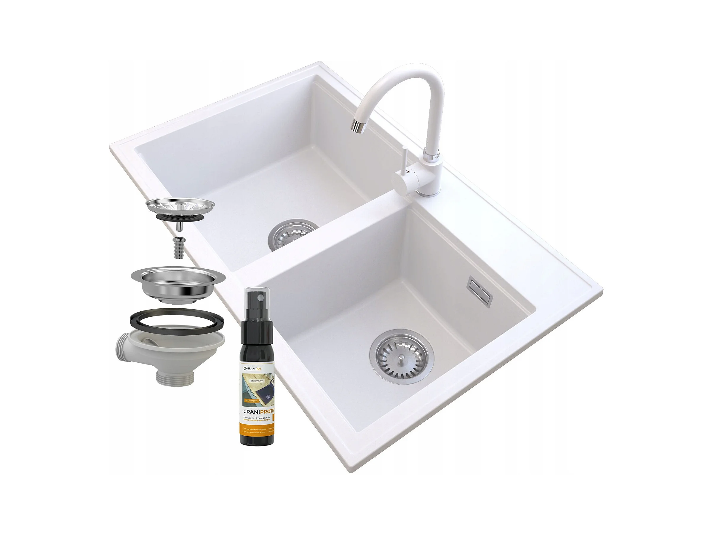 ÉVIER EN GRANIT SIPHON BLANC ROBINET CHROMÉ HEKTOR