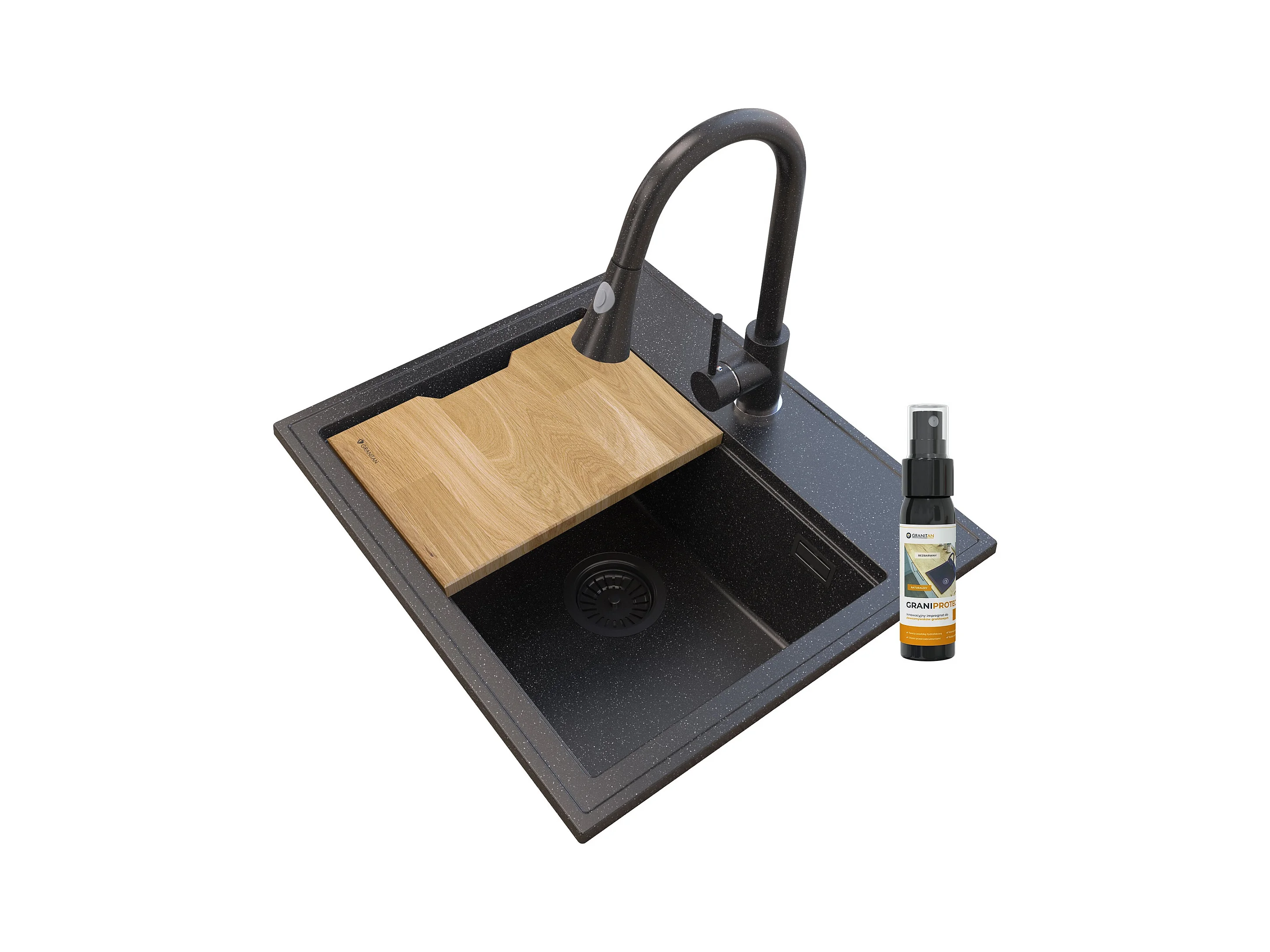ÉVIER EN GRANIT TACHETÉ FOXAL +SERPENT DE CHAUVE-SOURIS TACHETÉ