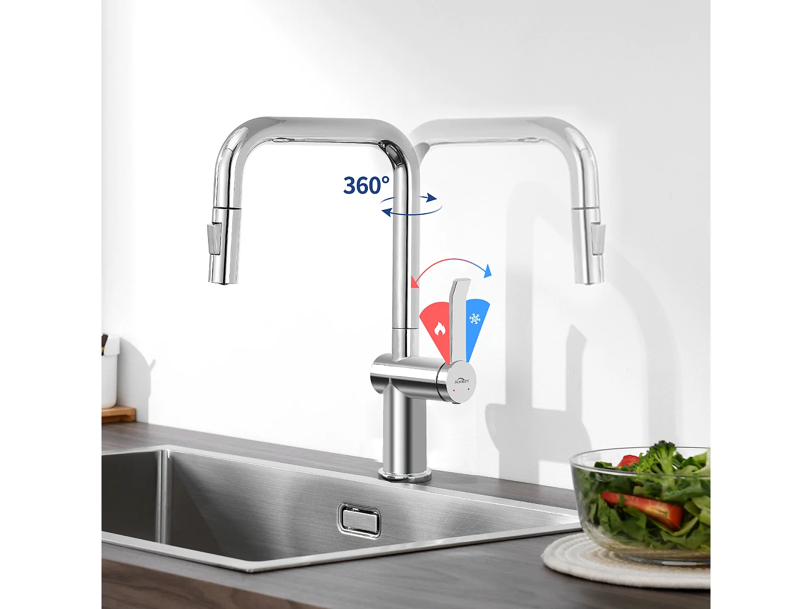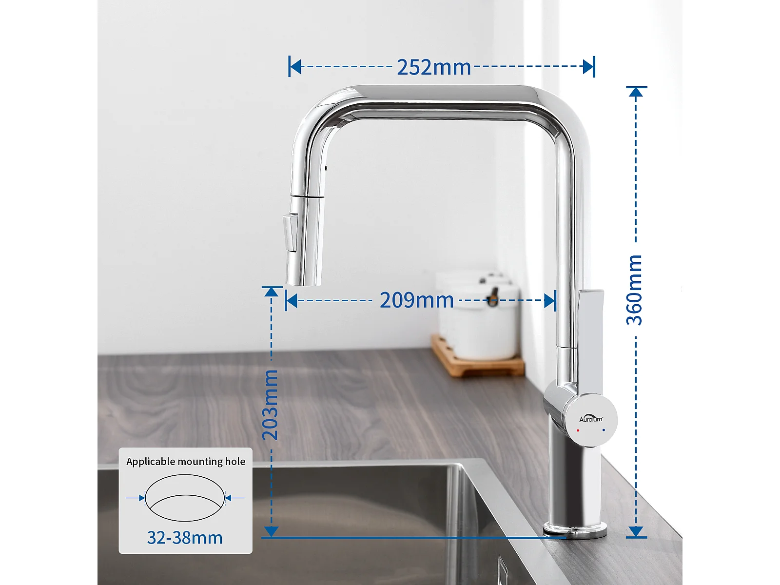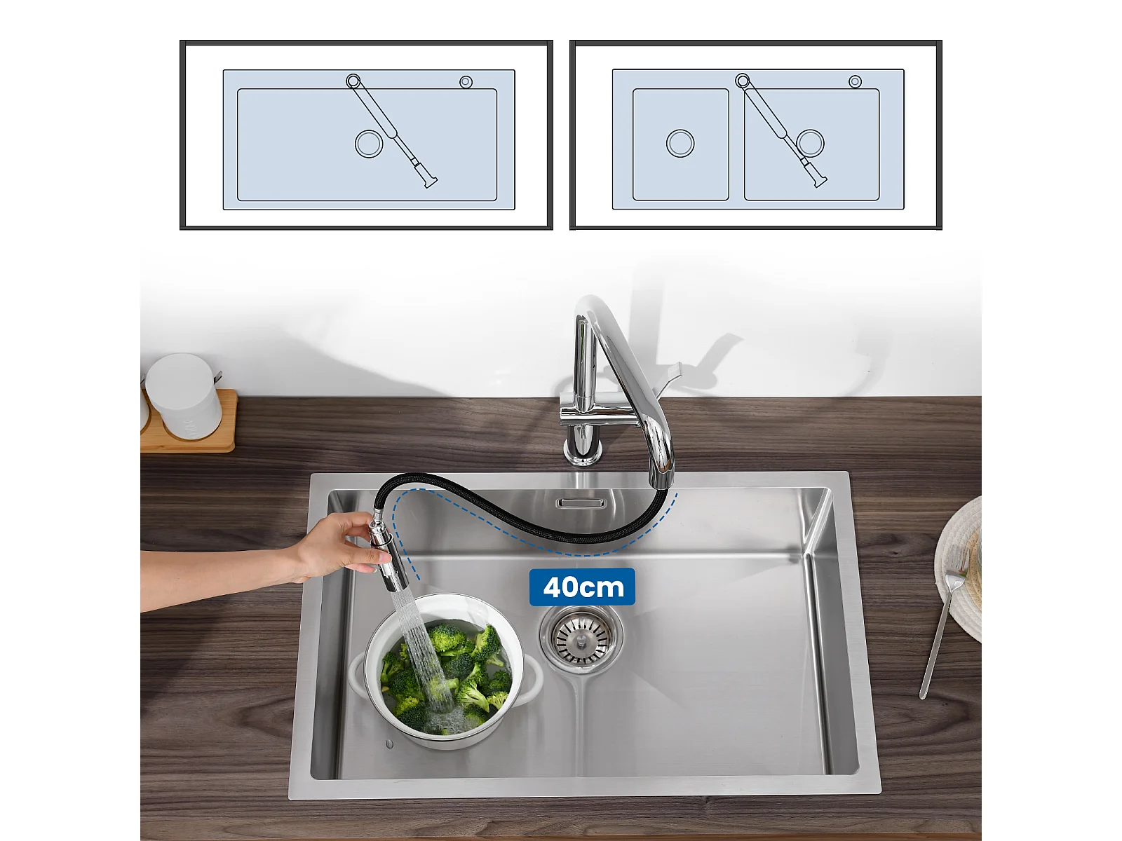 Évier Encastré 44x44x20CM,Évier Cuisine 1 Bac en Inox,Argent+Robinet Cuisine avec Douchette Extractible Rotatif 360 °,2 Fonctions,Chromé