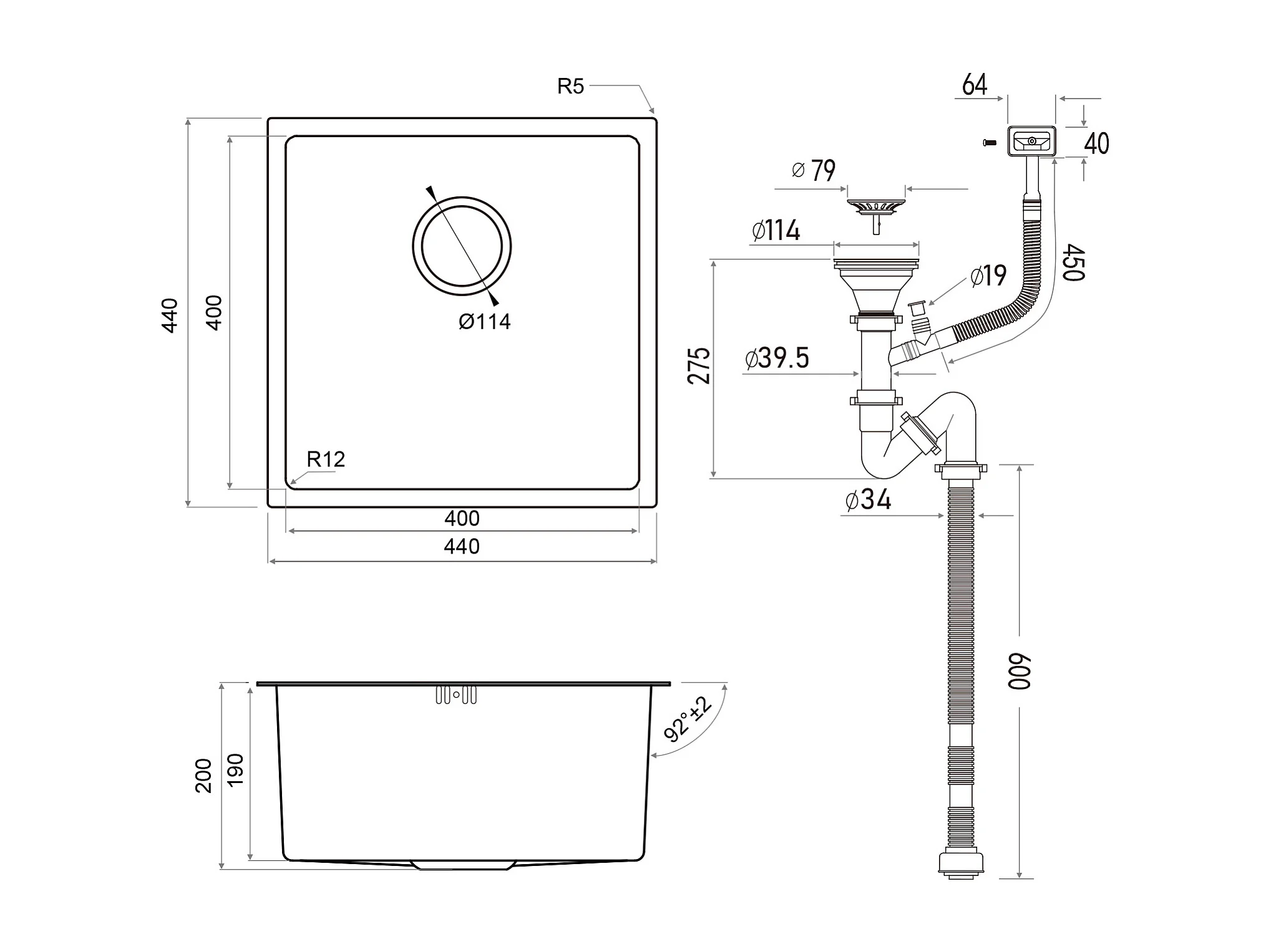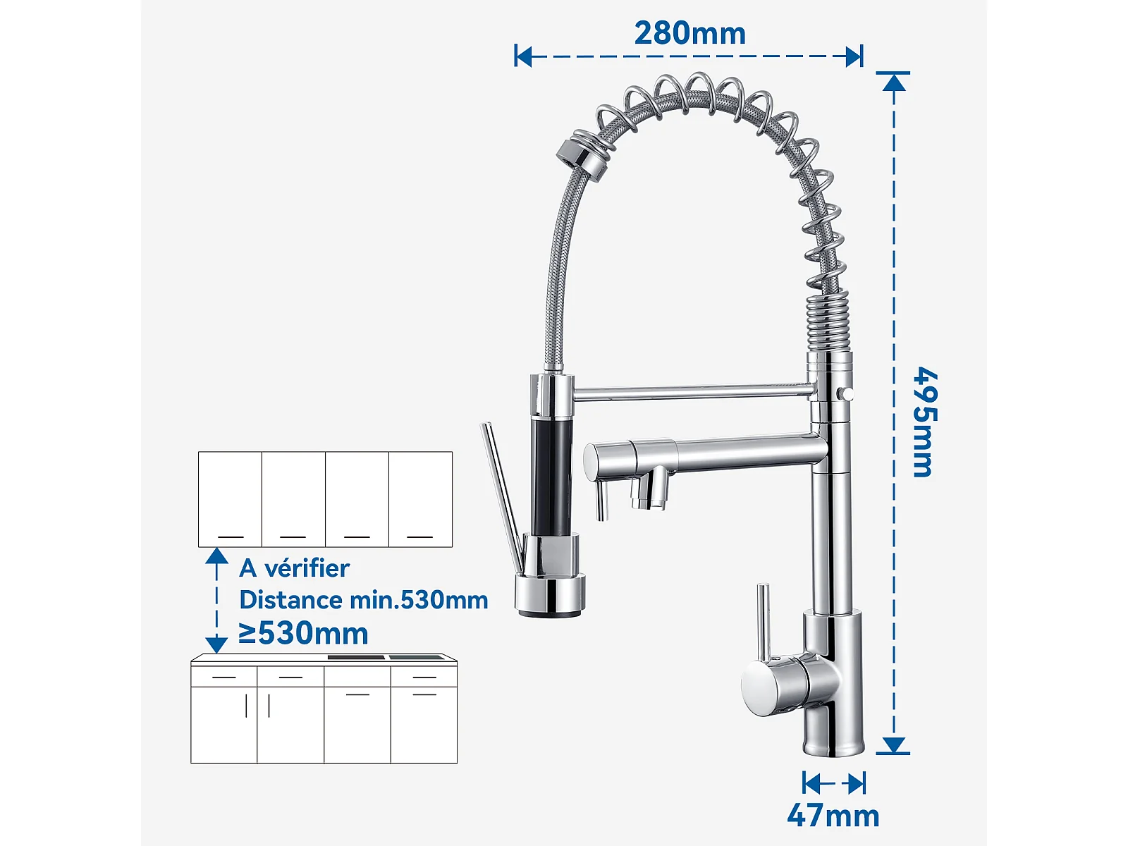 Évier Encastré 44x44x20CM- Évier de Cuisine 1 Bac en Acier Inoxydable 304,Argent+Robinet Cuisine Rotatif 360° Douchette Extractible