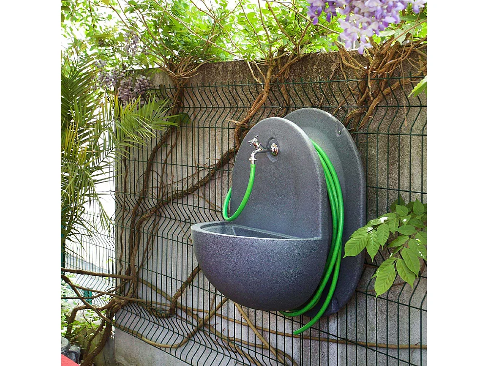 Evier extérieur en polyéthylène avec porte tuyau d'arrosage intégré Mars Avec équipement