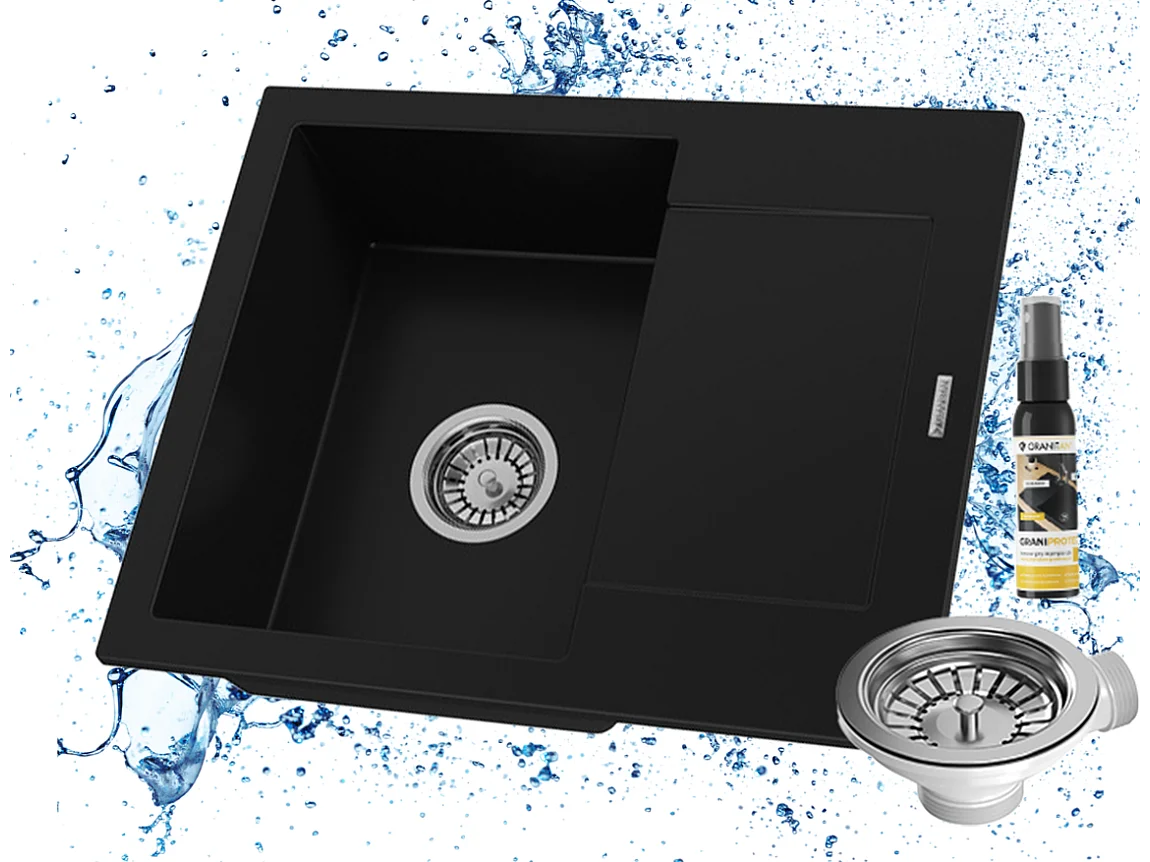 Évier Granit BELLO Noir Monocuve avec Siphon
