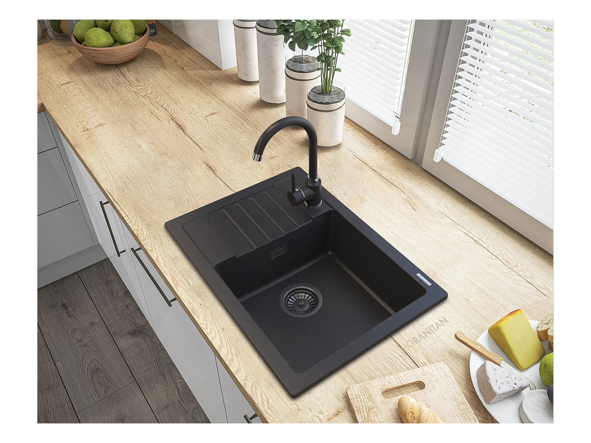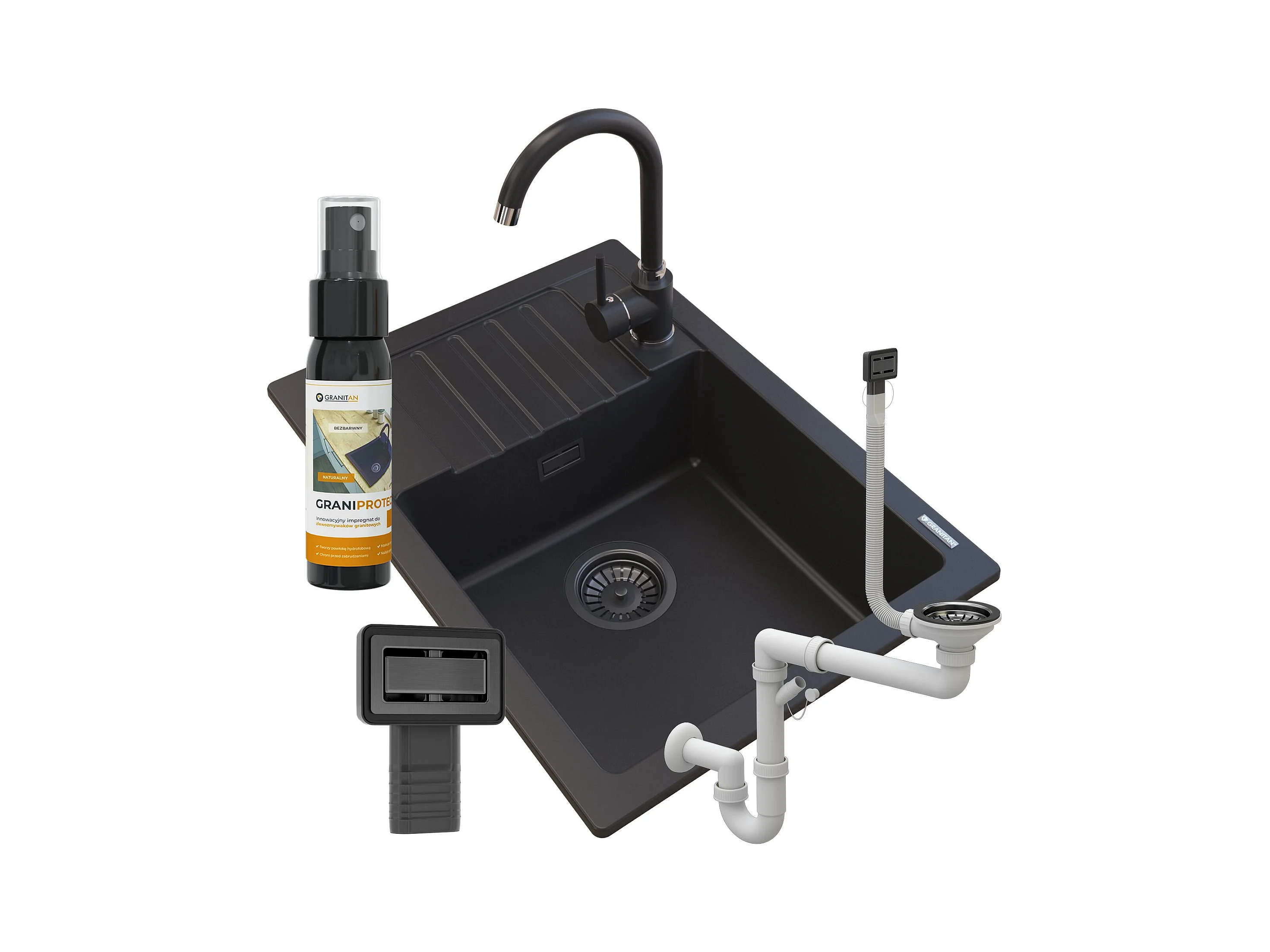ÉVIER GRANIT NOIR ARGOS + MITIGEUR BETA + SIPHON