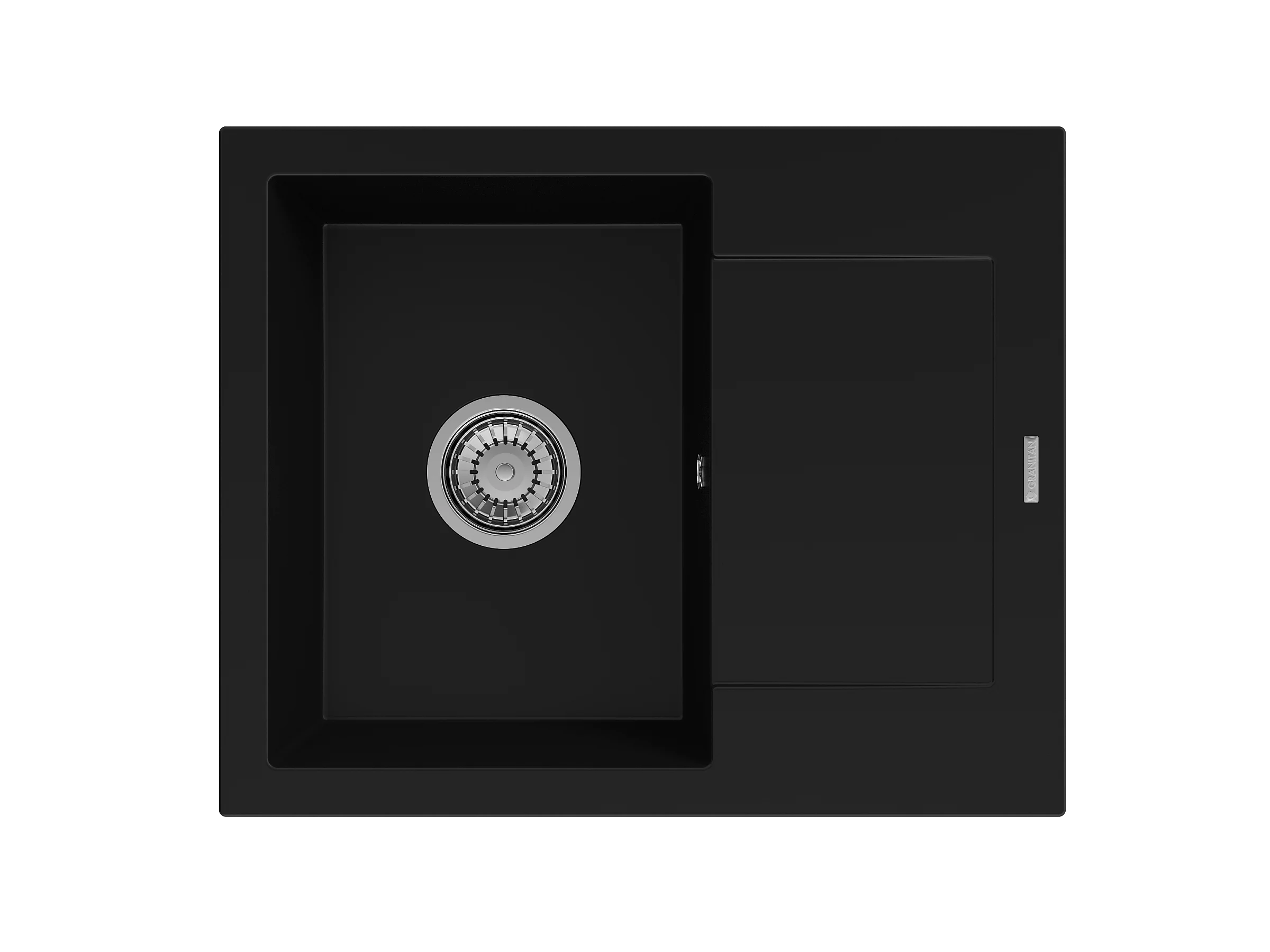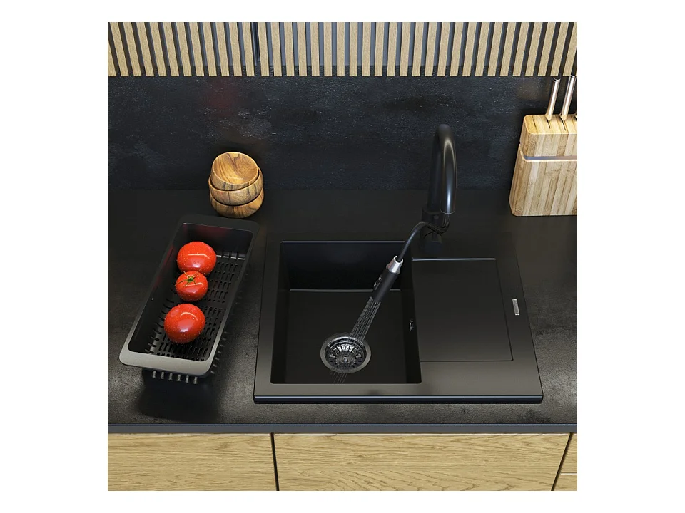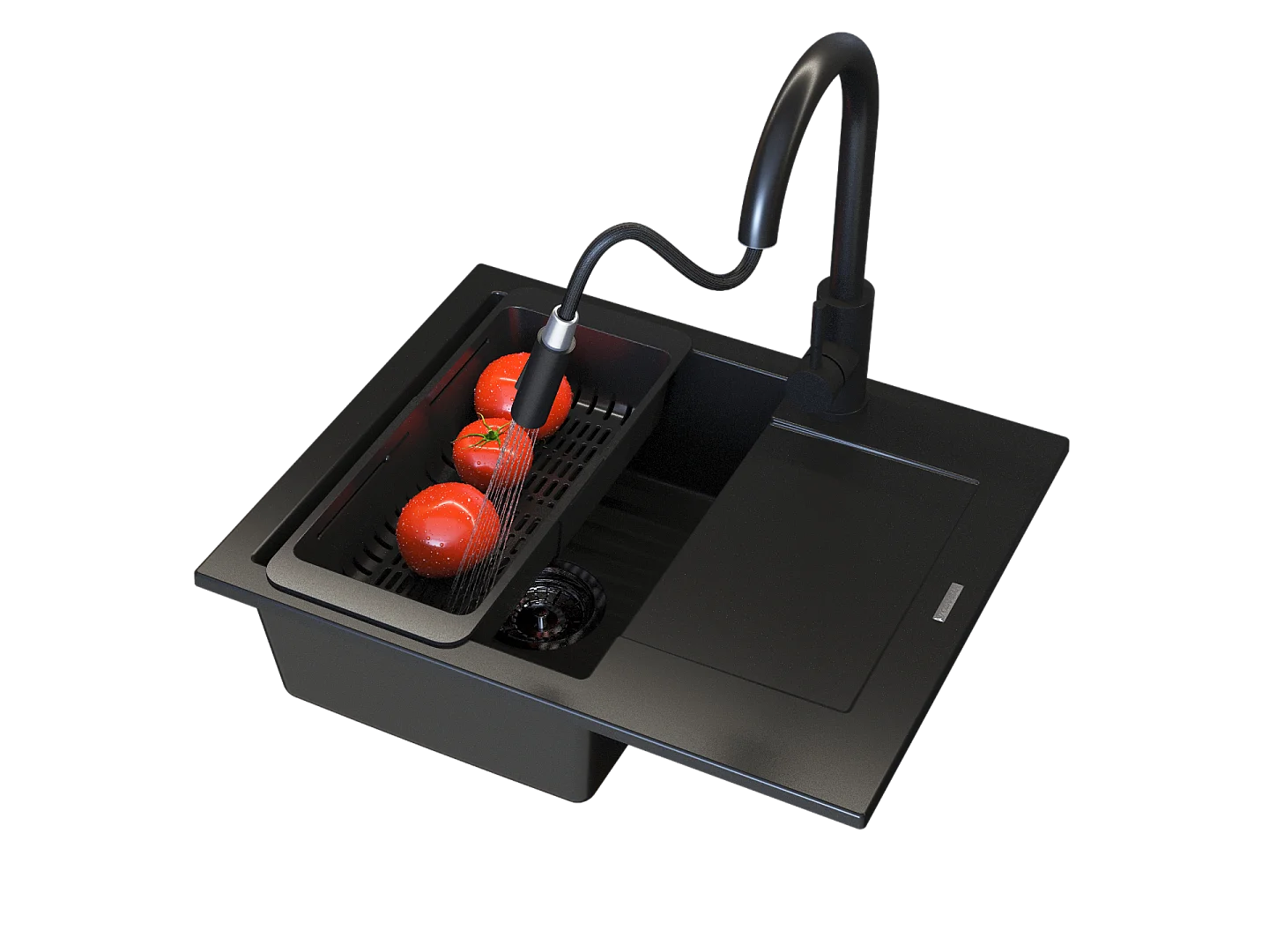 Évier Granit Noir avec Robinet et Siphon Chrome