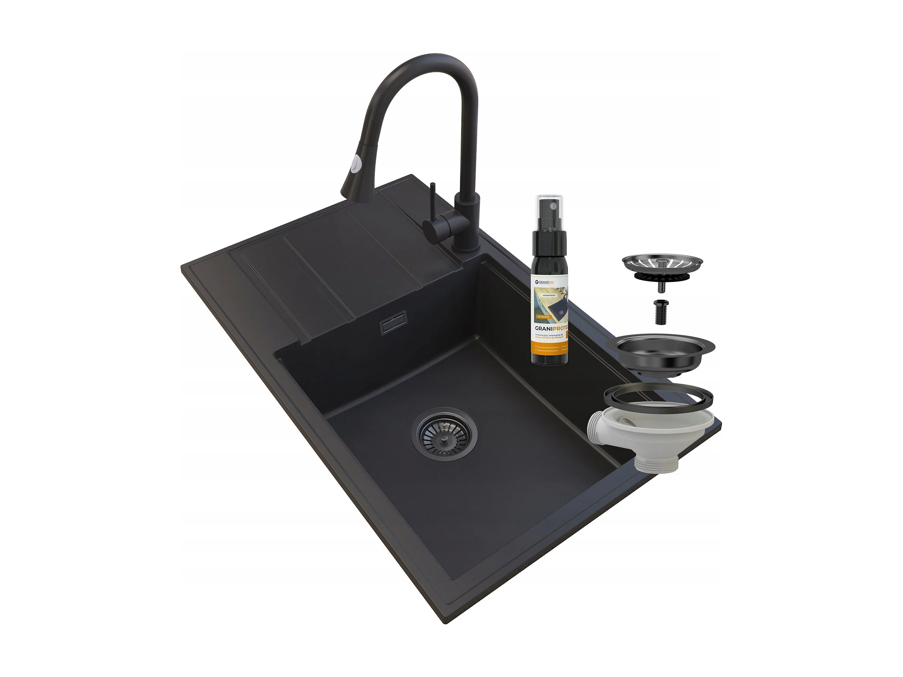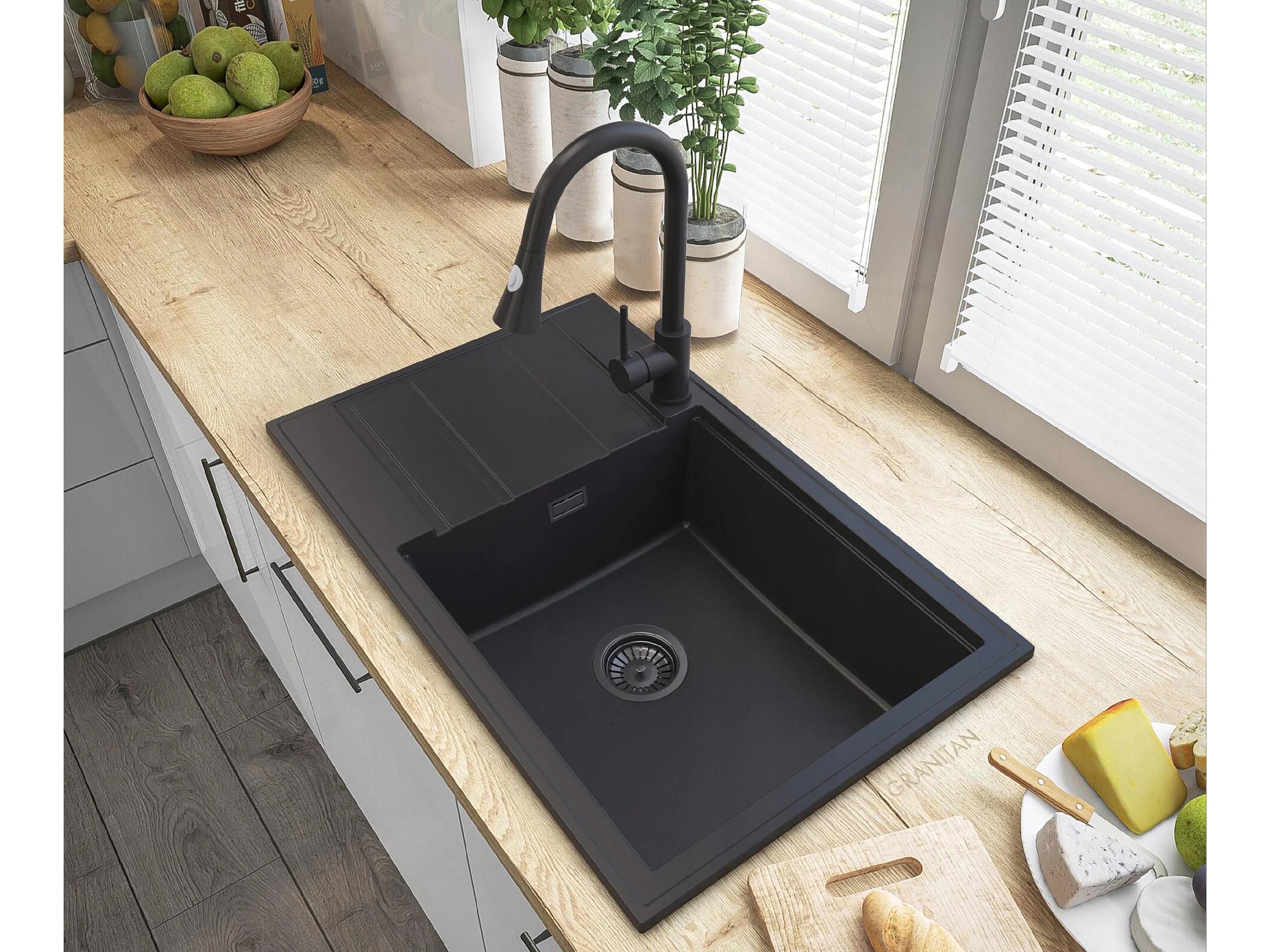 ÉVIER GRANIT NOIR LOUIS SIPHON BAT SNAKE NOIR