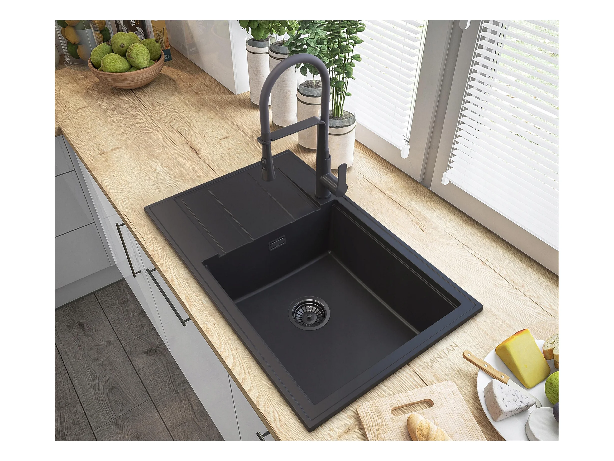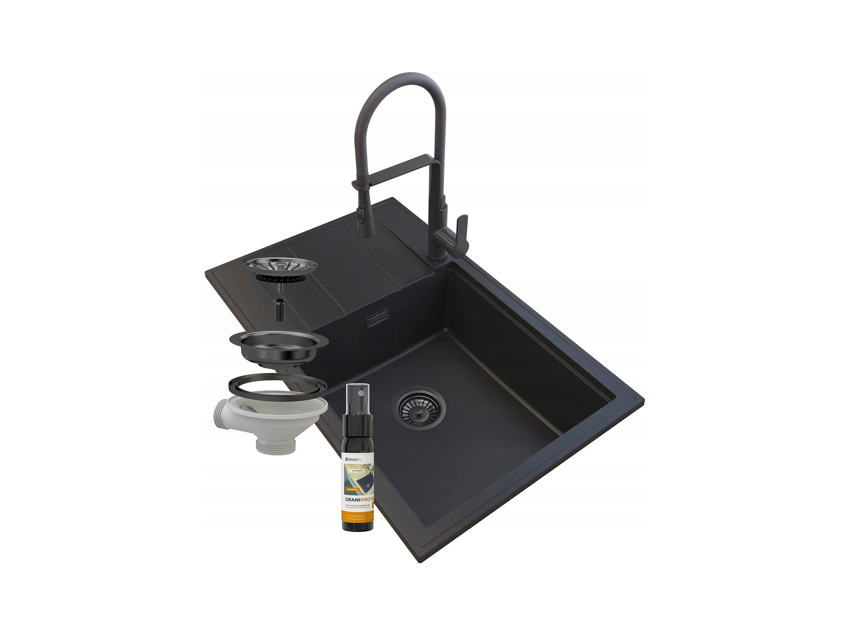 ÉVIER GRANIT NOIR LOUIS SIPHON BAT VEGAS NOIR