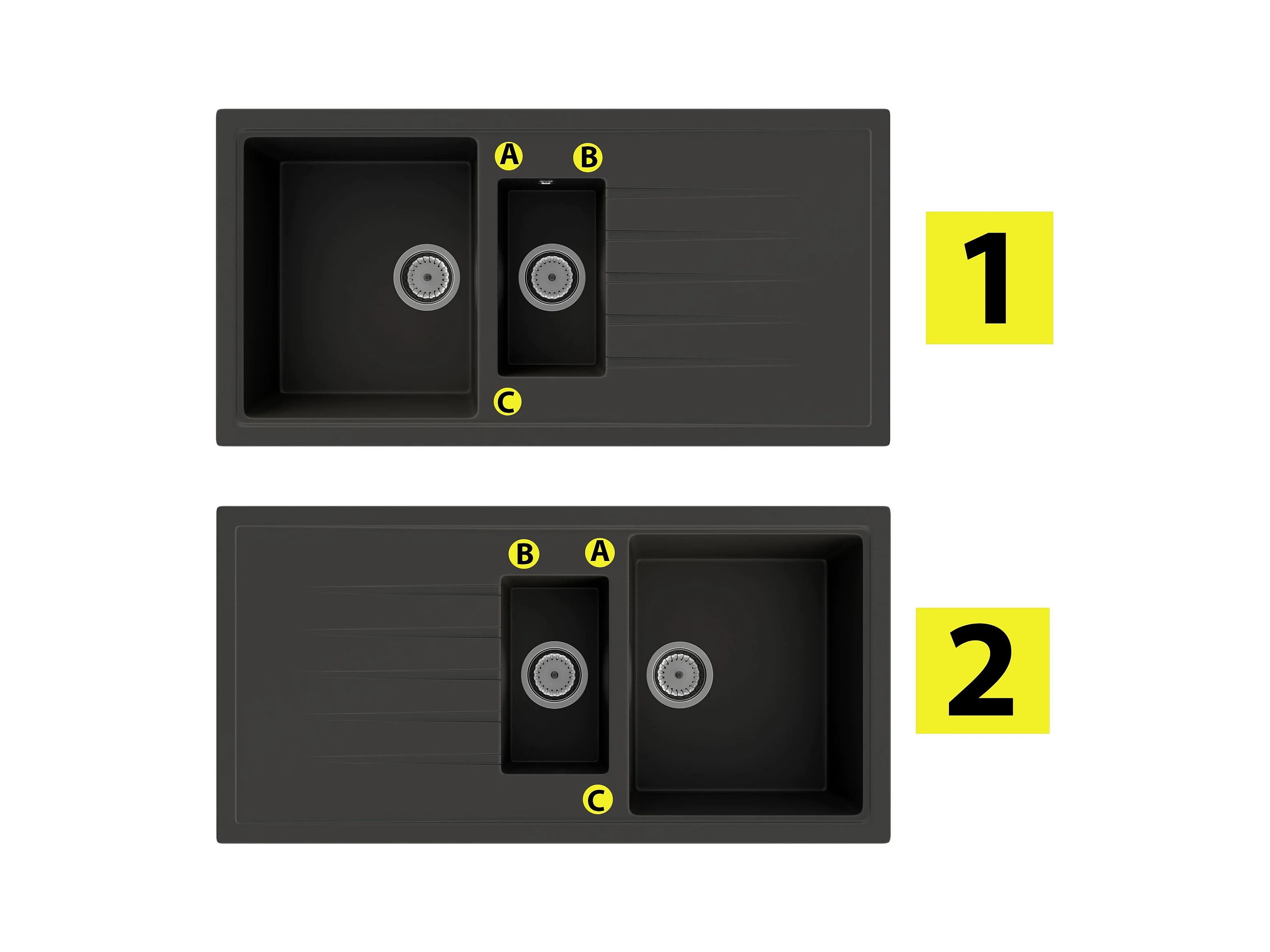 ÉVIER GRANIT SOLARIS NOIR SIPHON CLICK KLAK