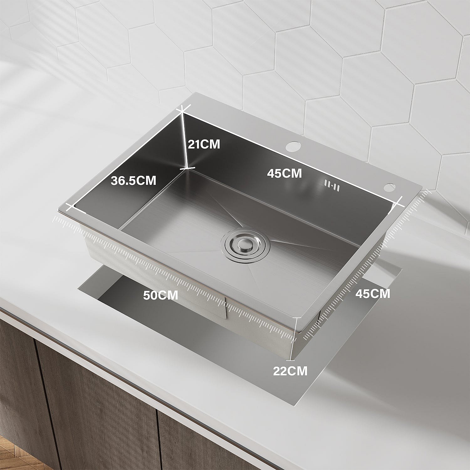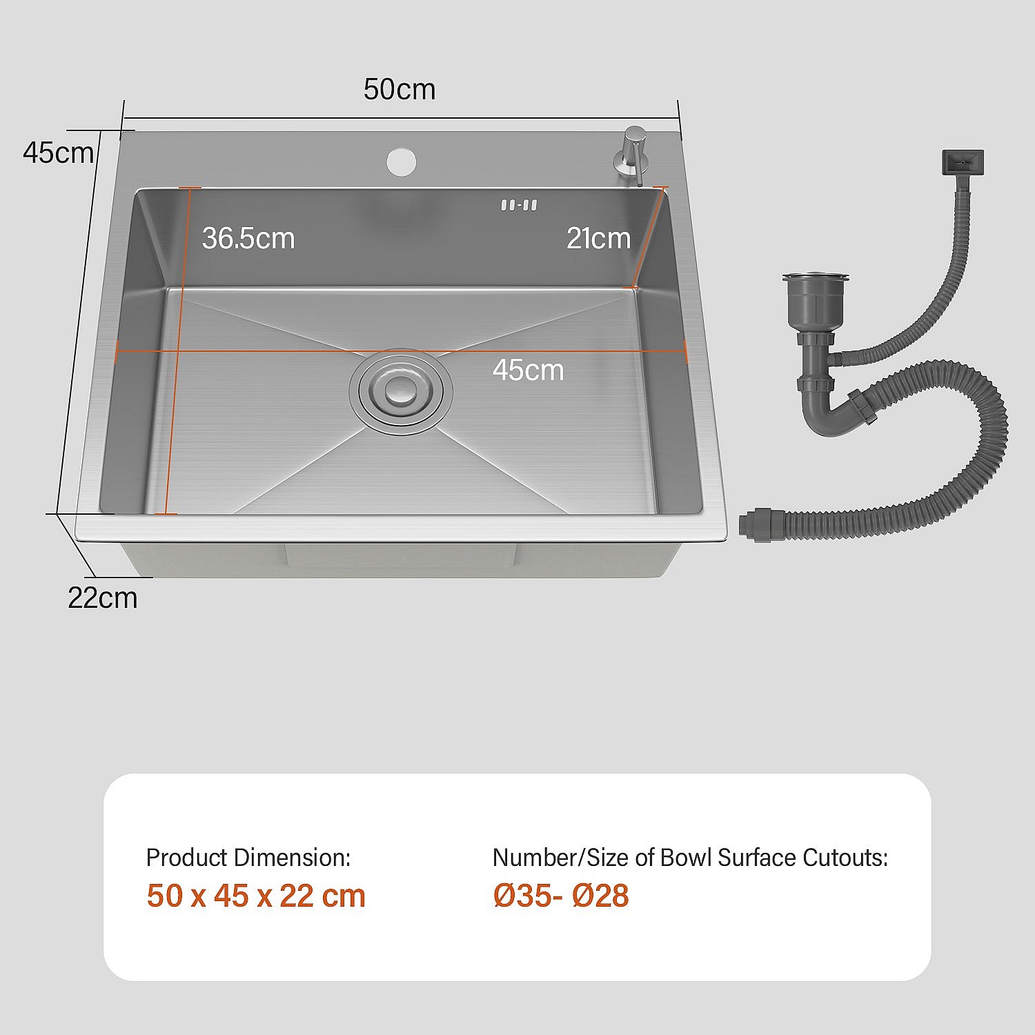 Évier de Cuisine SucceBuy Évier de Cuisine Sous Plan 50 cm à Cuve Simple en Acier Inoxydable