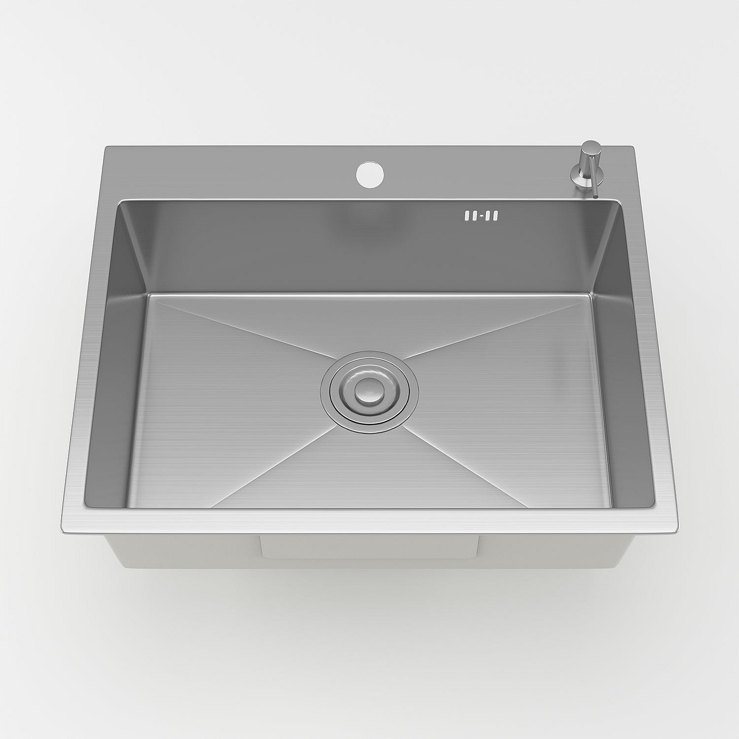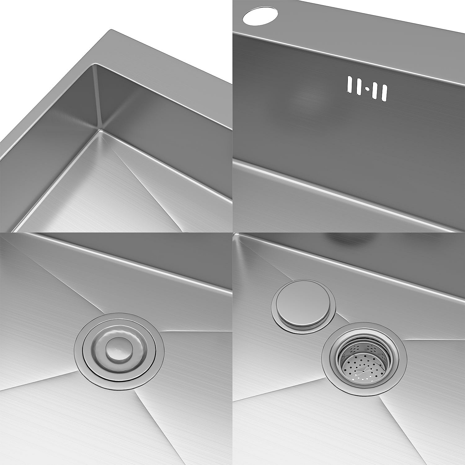 Évier de Cuisine SucceBuy Évier de Cuisine 68 cm à Montage par le Haut, Cuve Simple à Encastrer, Barre en Acier Inoxydable