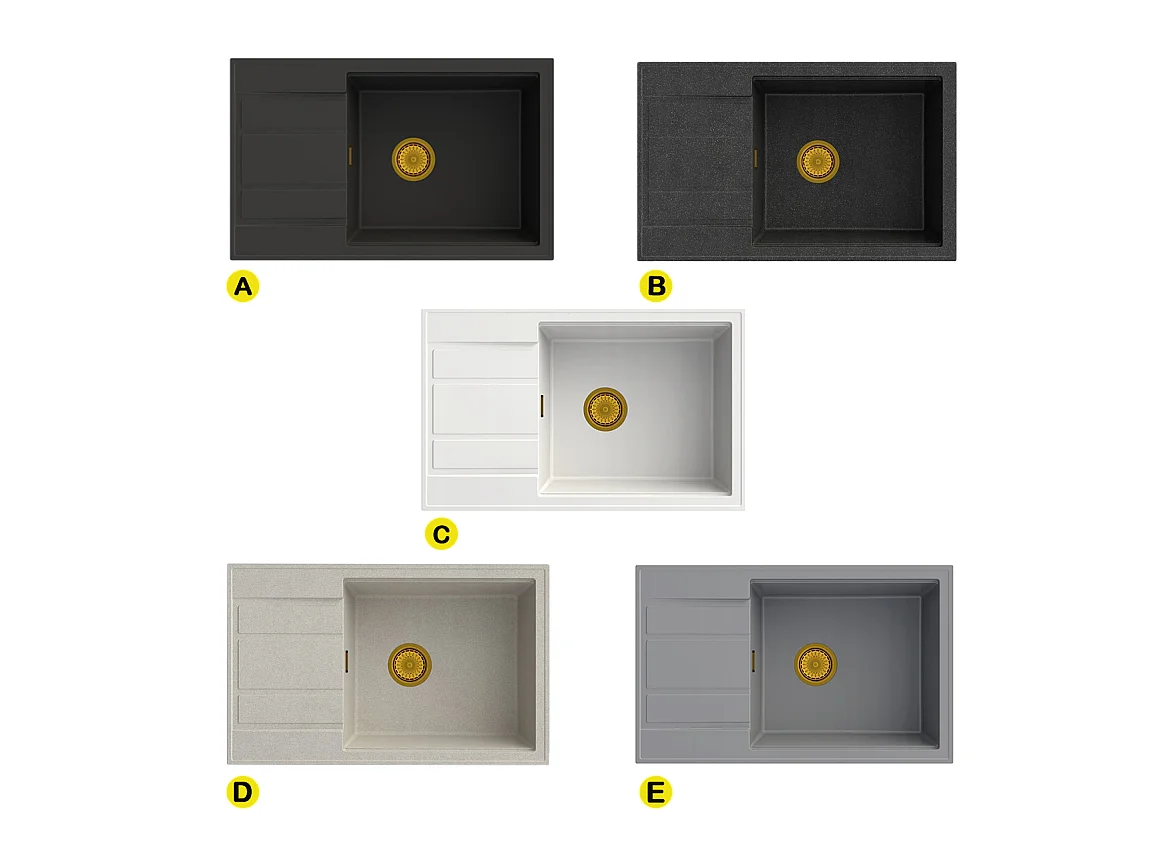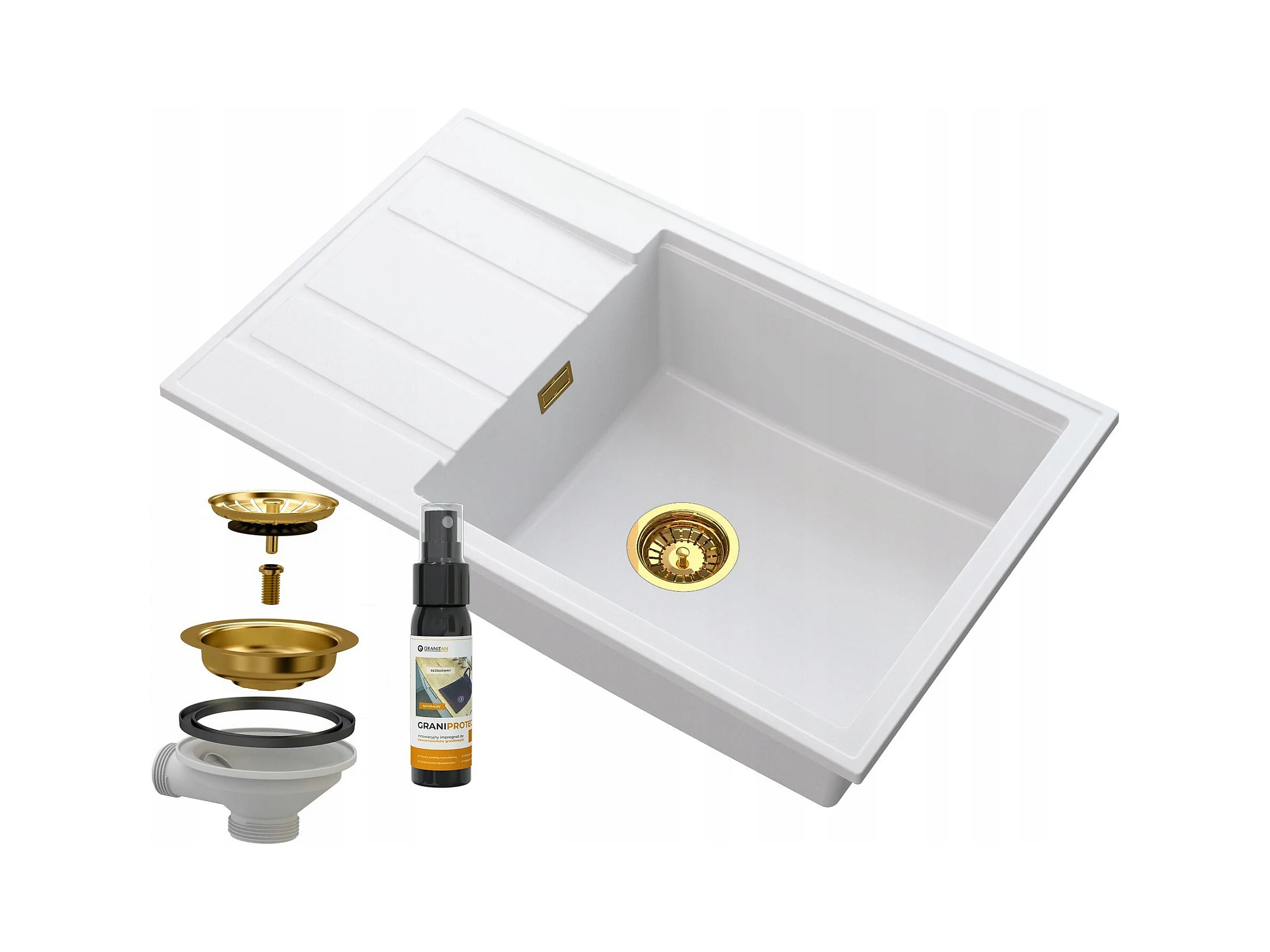 ÉVIER MONOCUVE EN GRANIT LOUIS AVEC ÉGOUTTOIR SIPHON OR