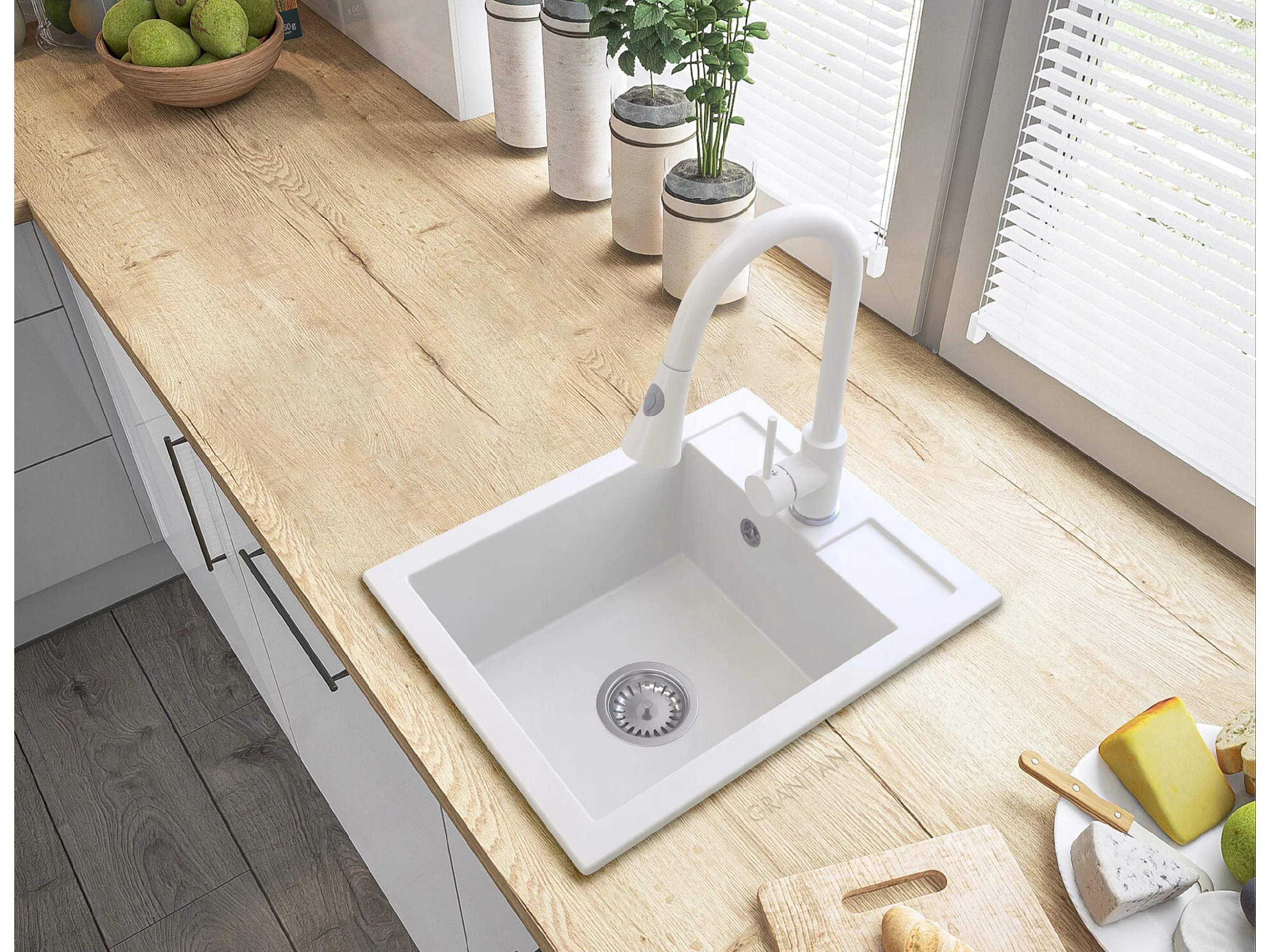 ÉVIER MONOCUVE EN GRANIT MEILLEUR ENSEMBLE DE ROBINETTERIE SIPHON MURAL