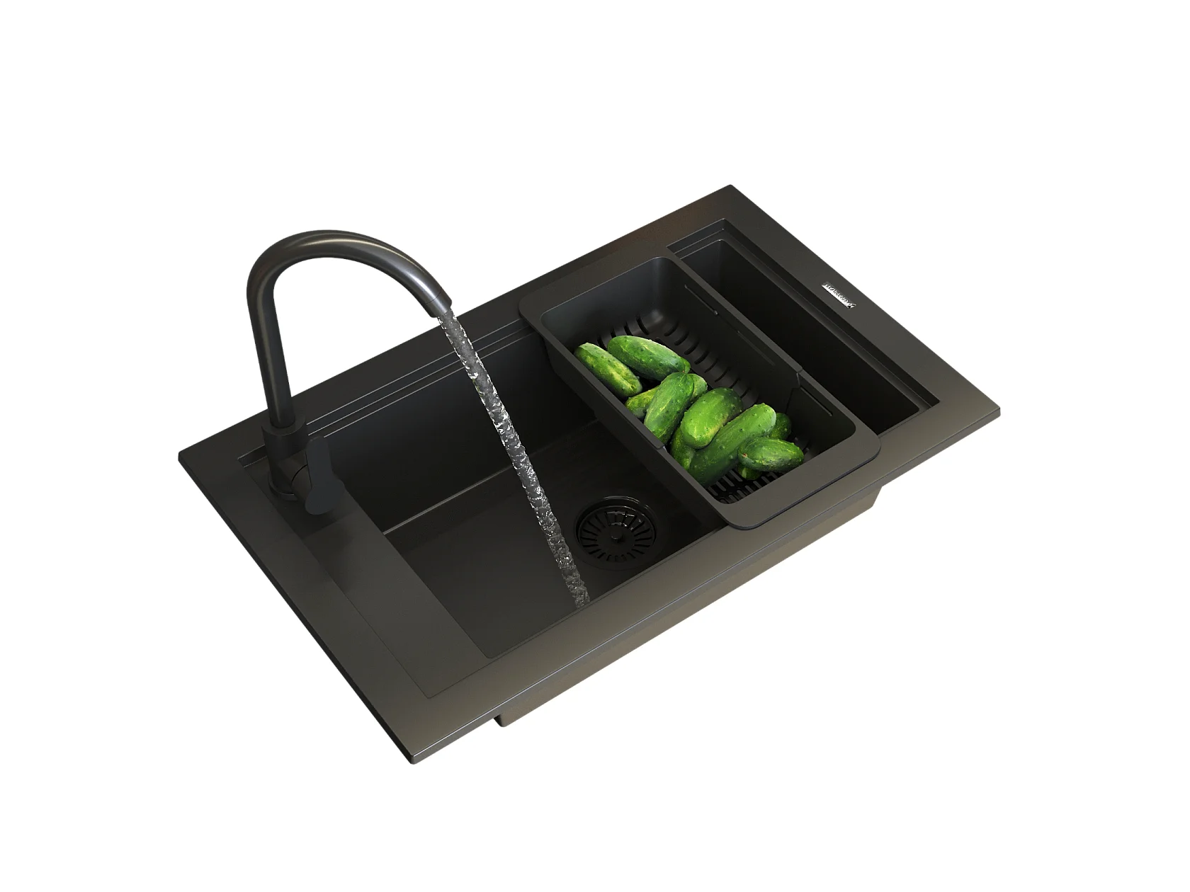 ÉVIER MONOCUVE MITIGEUR NOIR PANIER SIPHON PANAMA BOARD
