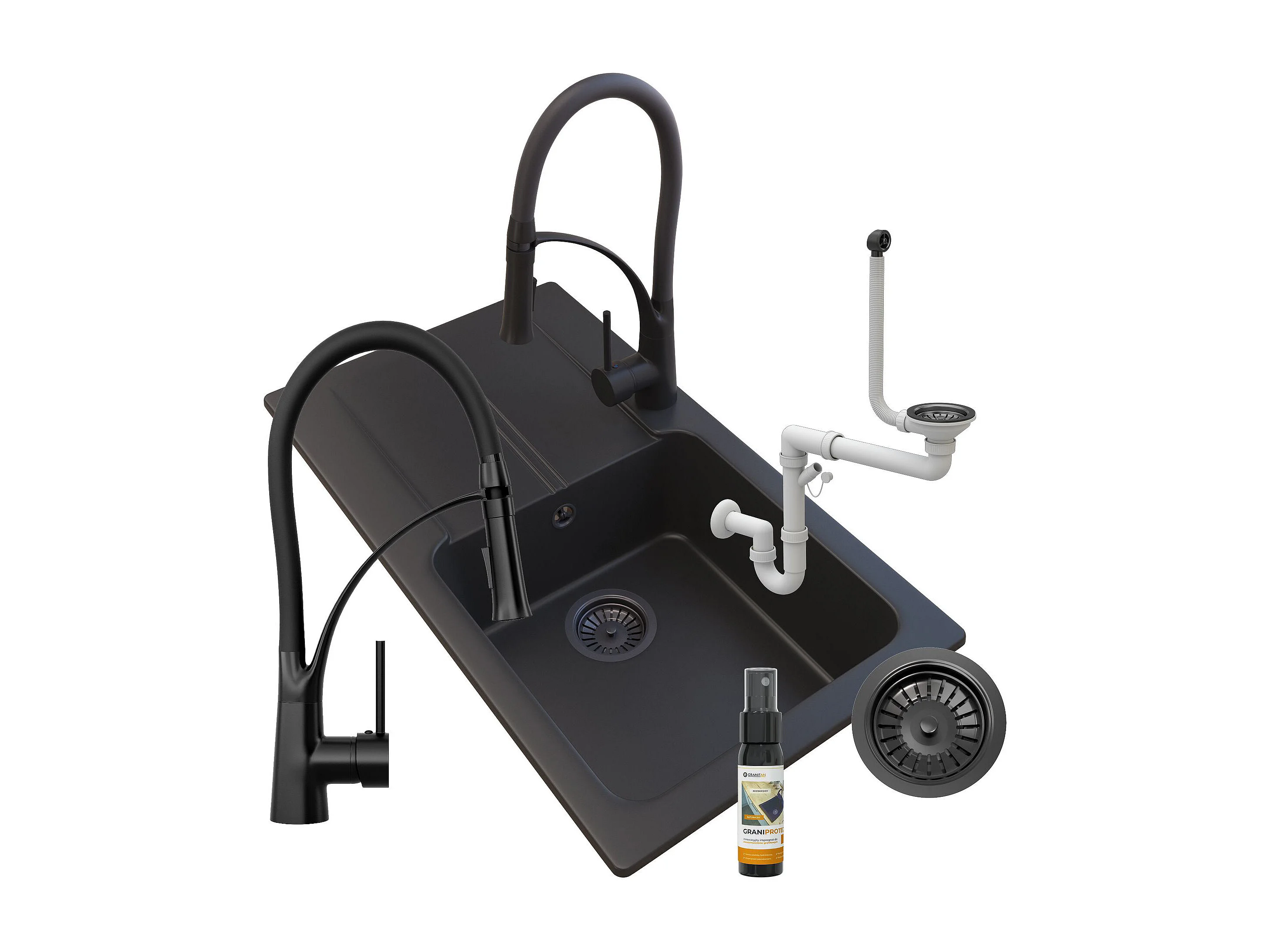ÉVIER NOIR EN GRANIT TASOS + MITIGEUR NEXO + SIPHON
