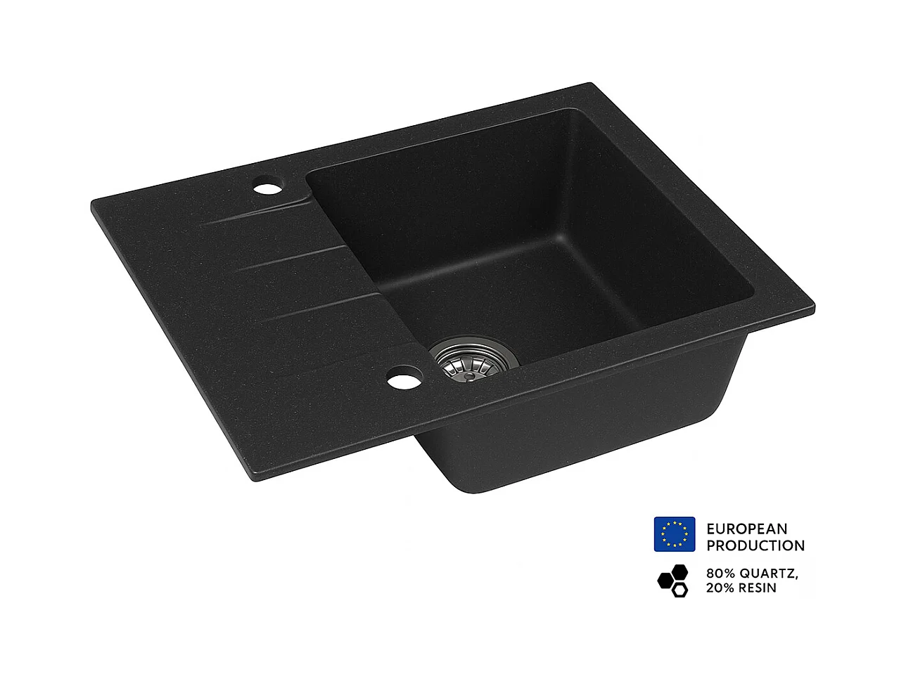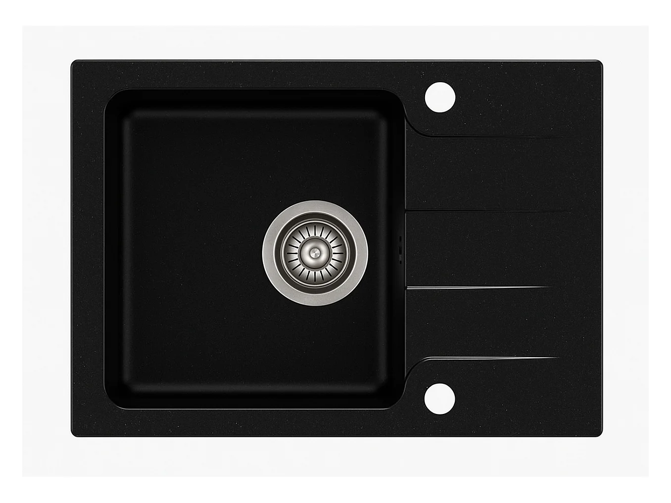 Evier rectangulaire RIVE NOIR en granit premium - 1 Bac avec égouttoir et vidage inclus