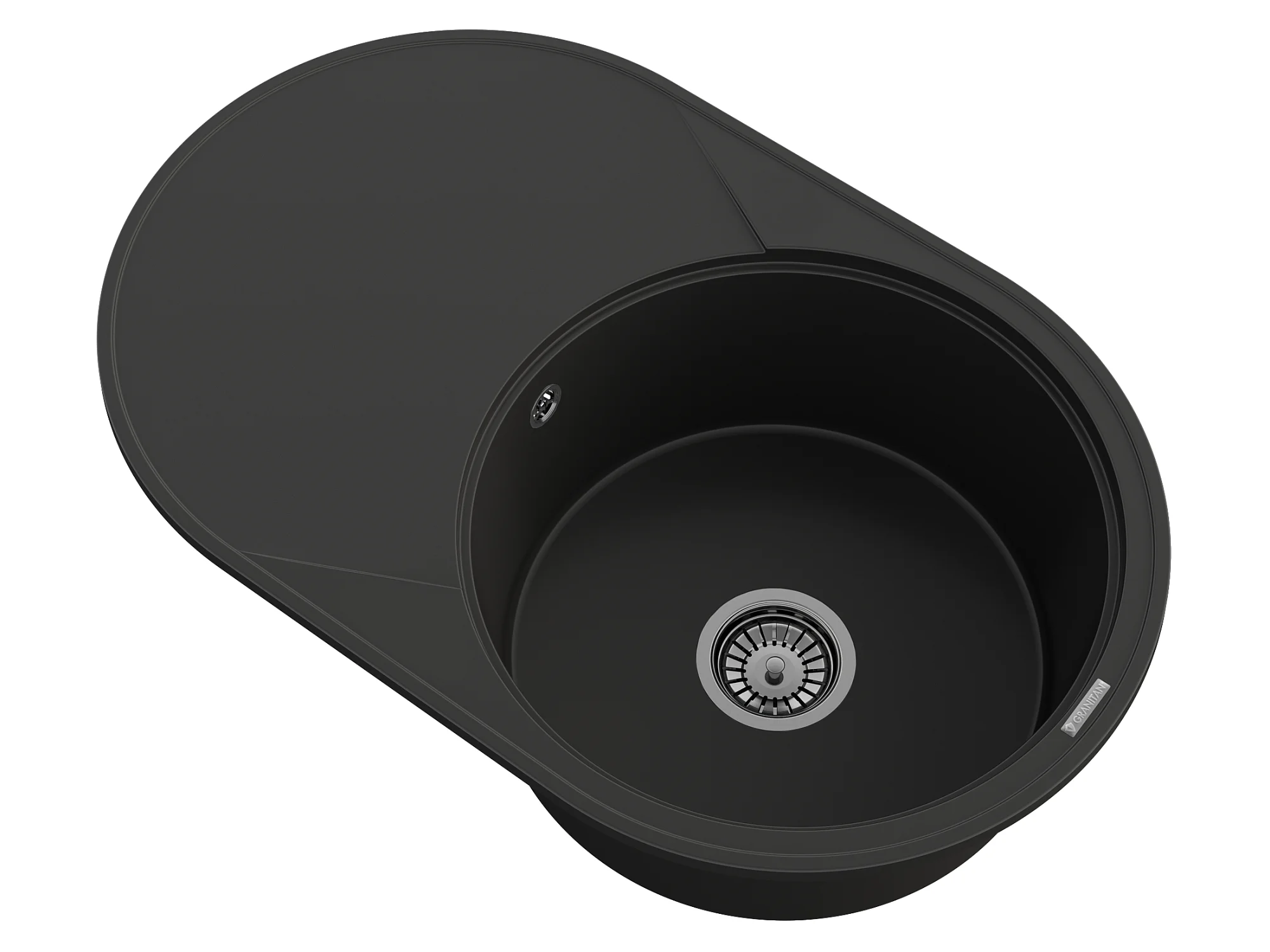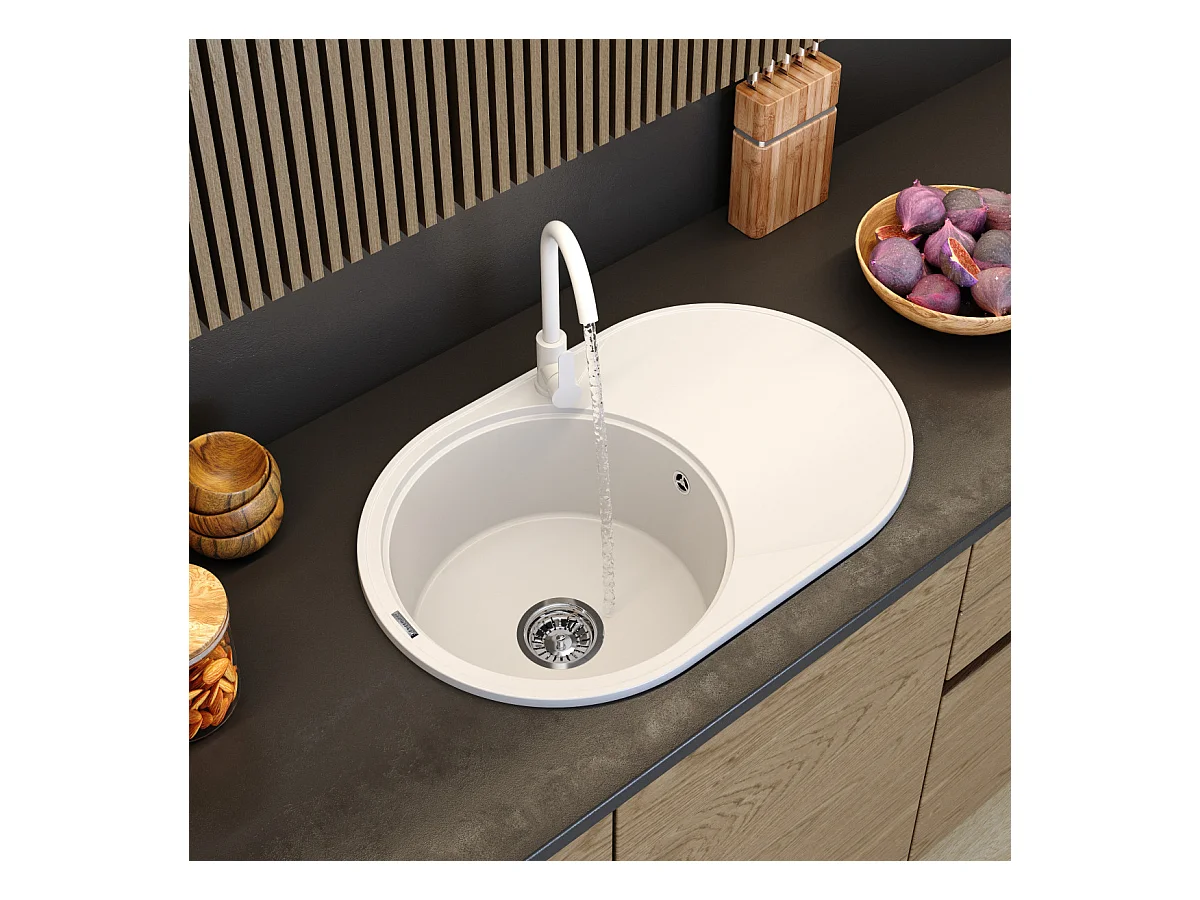 ÉVIER ROND EN GRANIT 1 CUVE GRAND ÉGOUTTOIR SIPHON CHROME SAVIO