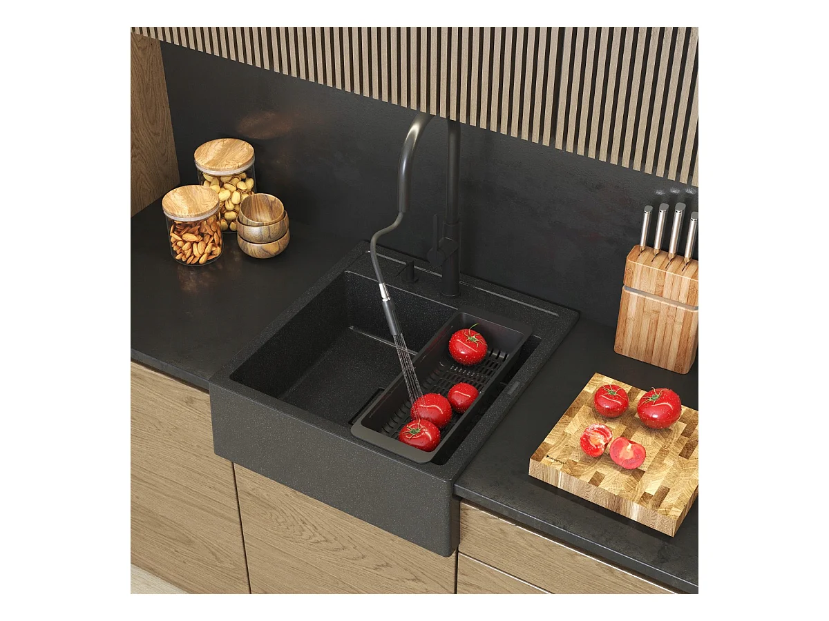 ÉVIER SCANDINAVE DE FERME NOIR TACHETÉ ROBINET DISTRIBUTEUR ÉGOUTTOIR TAVO
