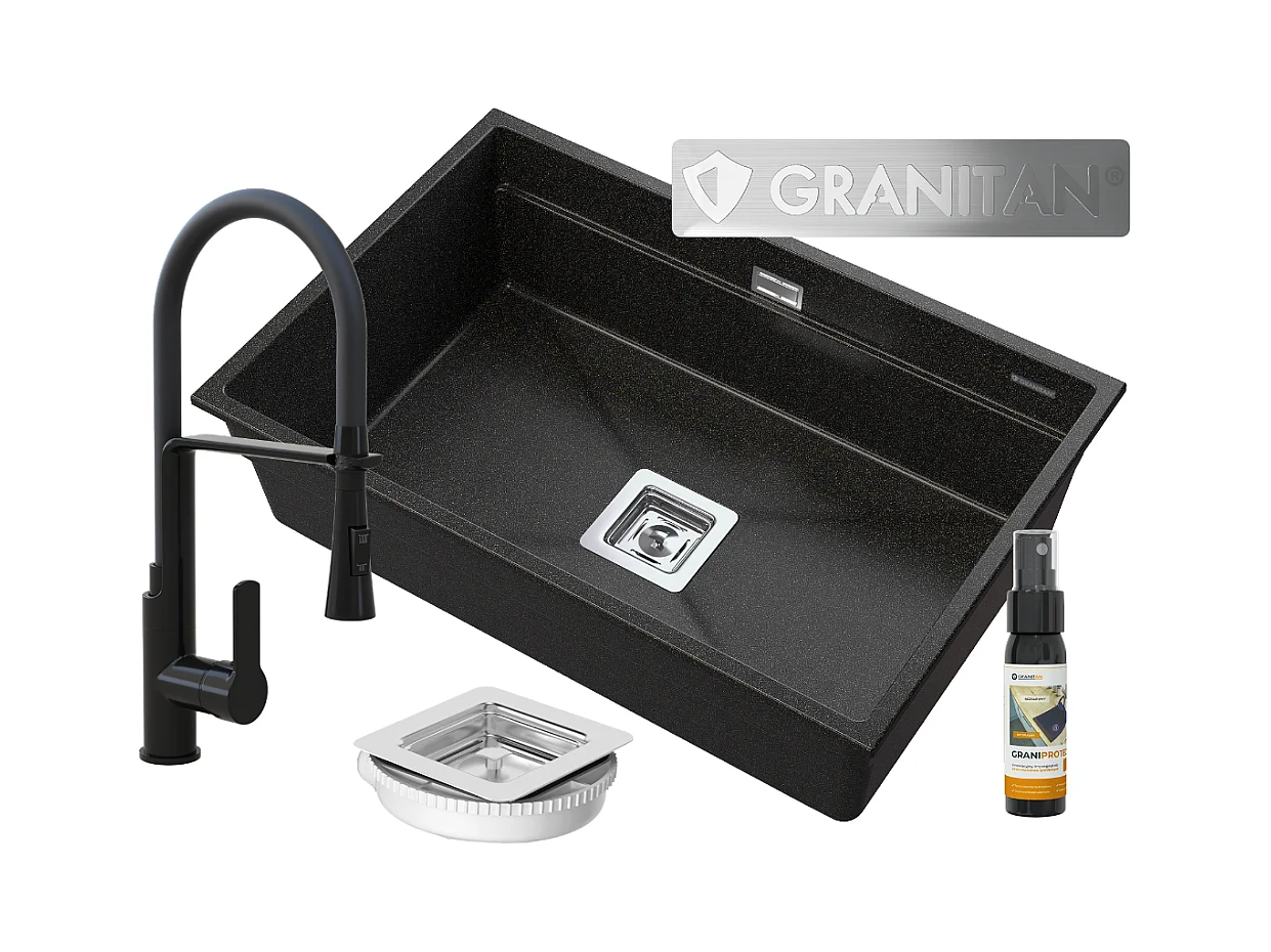 ÉVIER SOUS PLAN GRANIT DORÉ 1KOM ROBINET SIPHON EPIR