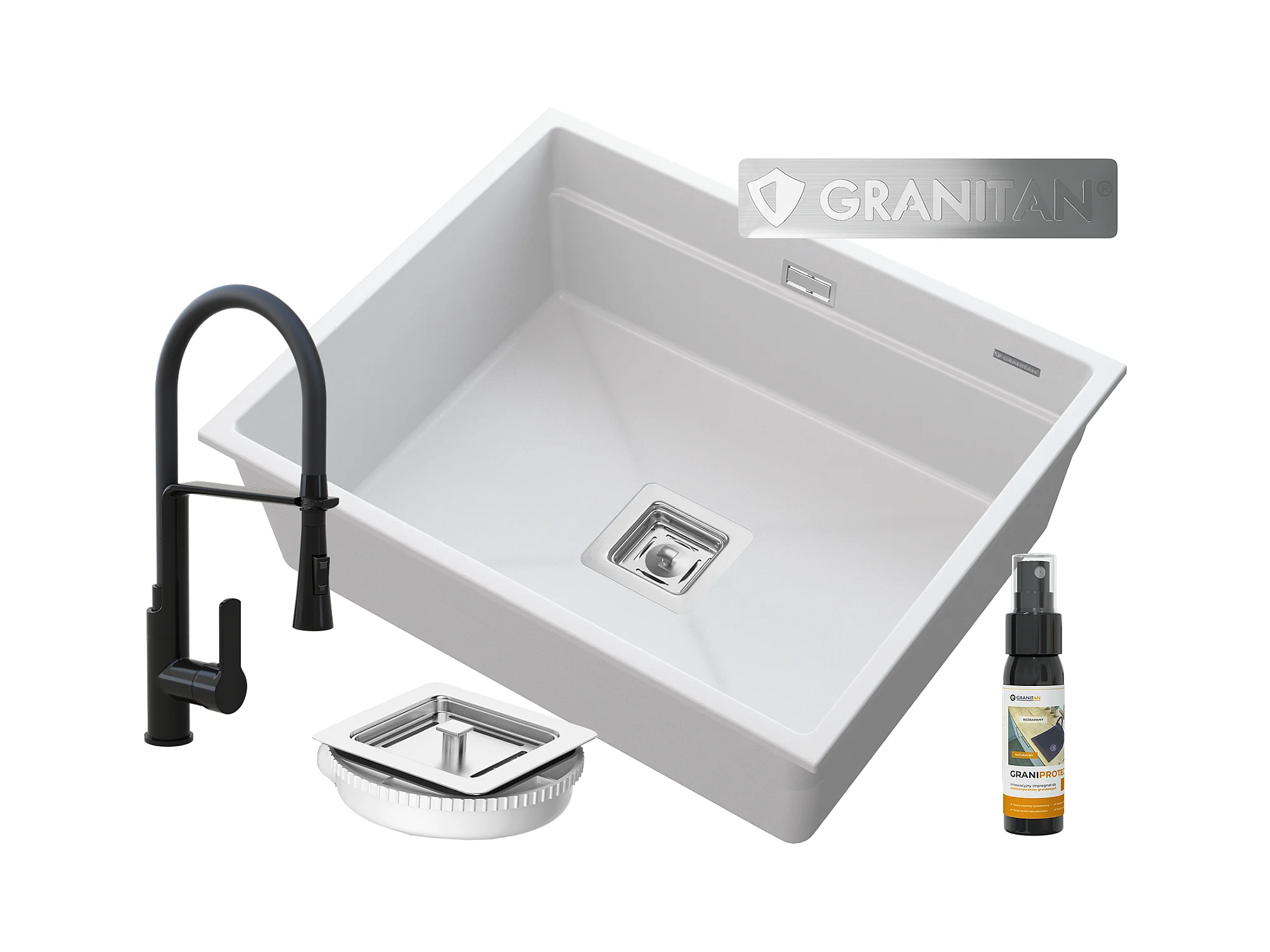 ÉVIER SOUS PLAN GRANIT ROBINET SIPHON CARRÉ EPIR 60