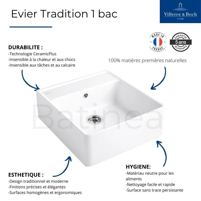 Evier timbre office VILLEROY ET BOCH Tradition Ivory CeramicPlus avec vidage automatique