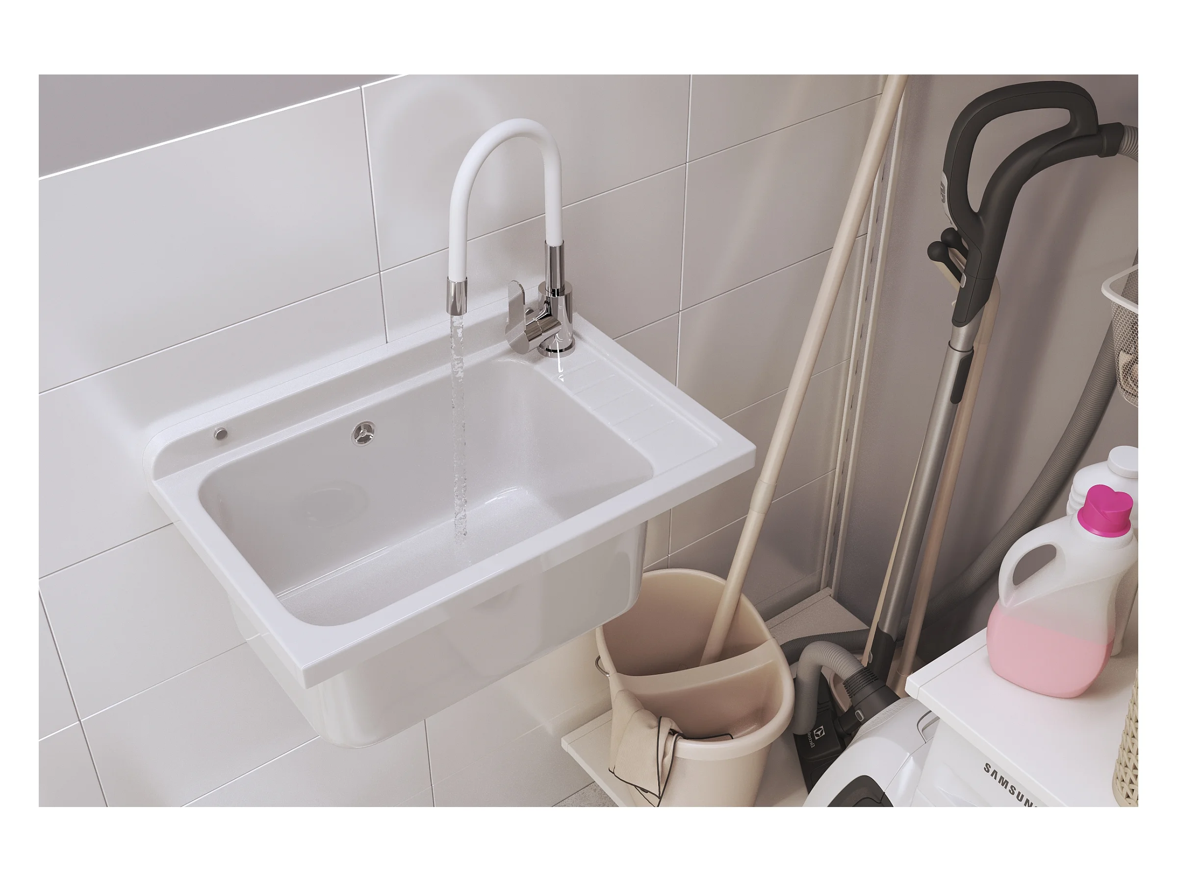 ÉVIER UTILITAIRE CUVE TECHNIQUE GARAGE BLANC ORTA ROBINETTERIE MURALE