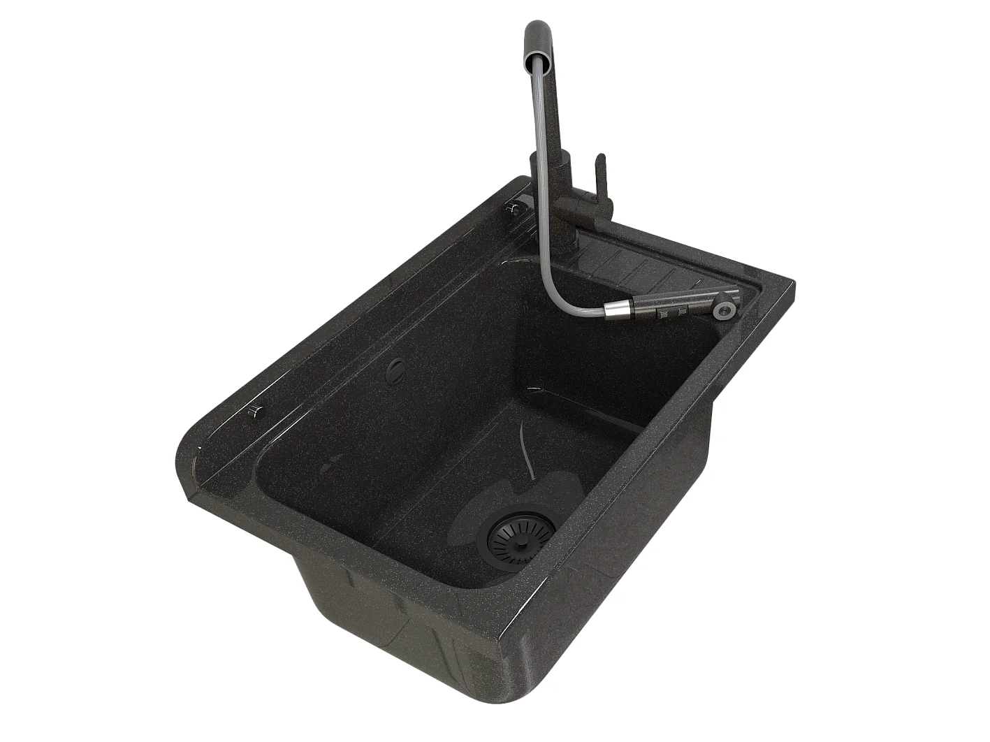 ÉVIER UTILITAIRE BOL NOIR ROBINET BEC EXTRACTIBLE BUANDERIE GARAGE MONZA