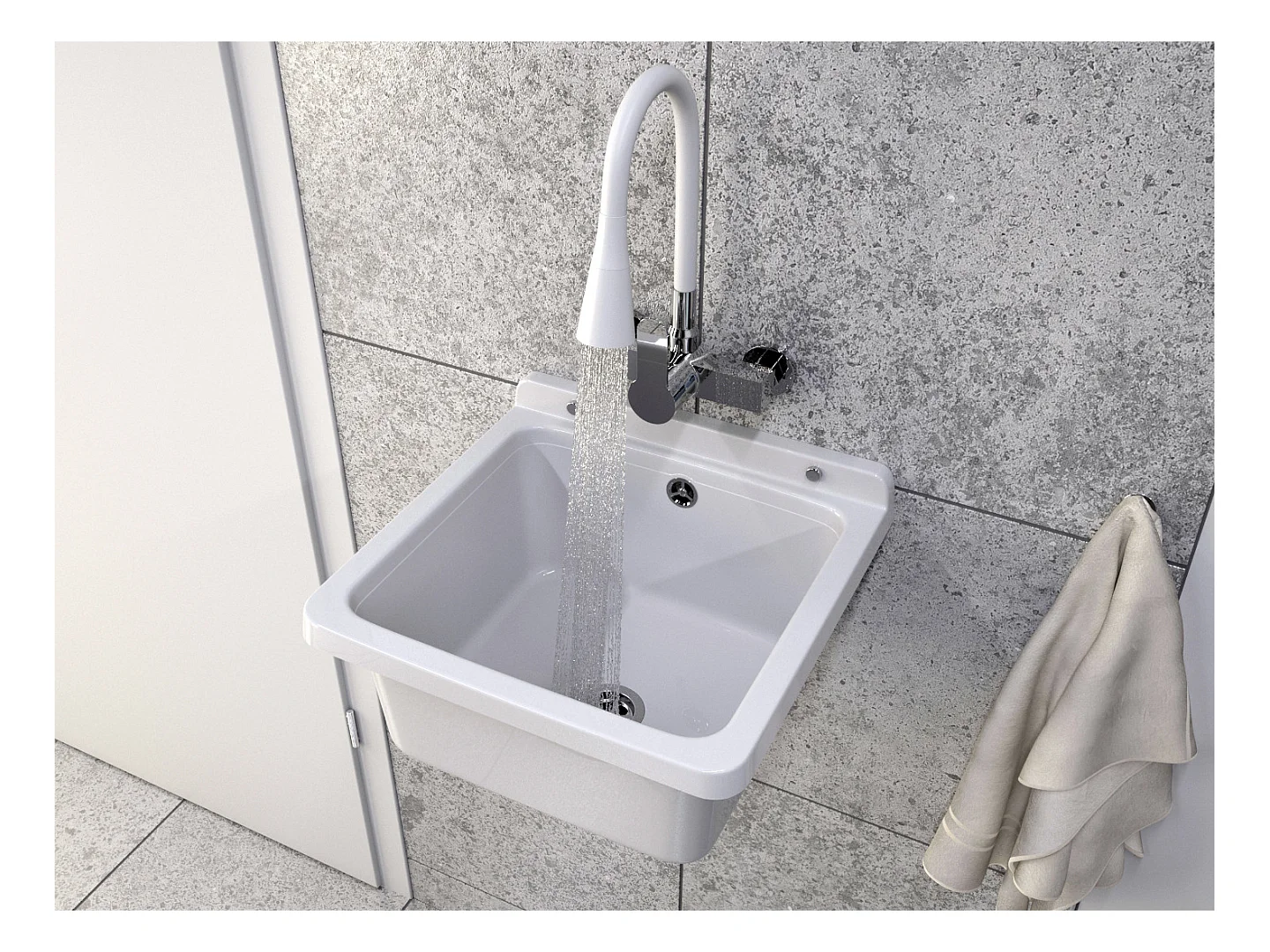 ÉVIER UTILITAIRE CUVE TECHNIQUE GARAGE BLANC ORTA ROBINETTERIE MURALE