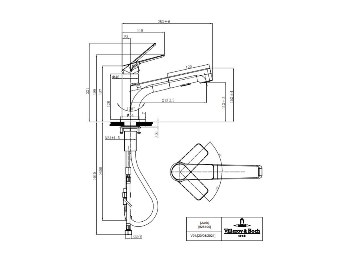 Evier 1 bac VILLEROY ET BOCH Architectura 60 + Robinet de cuisine Junis Shower