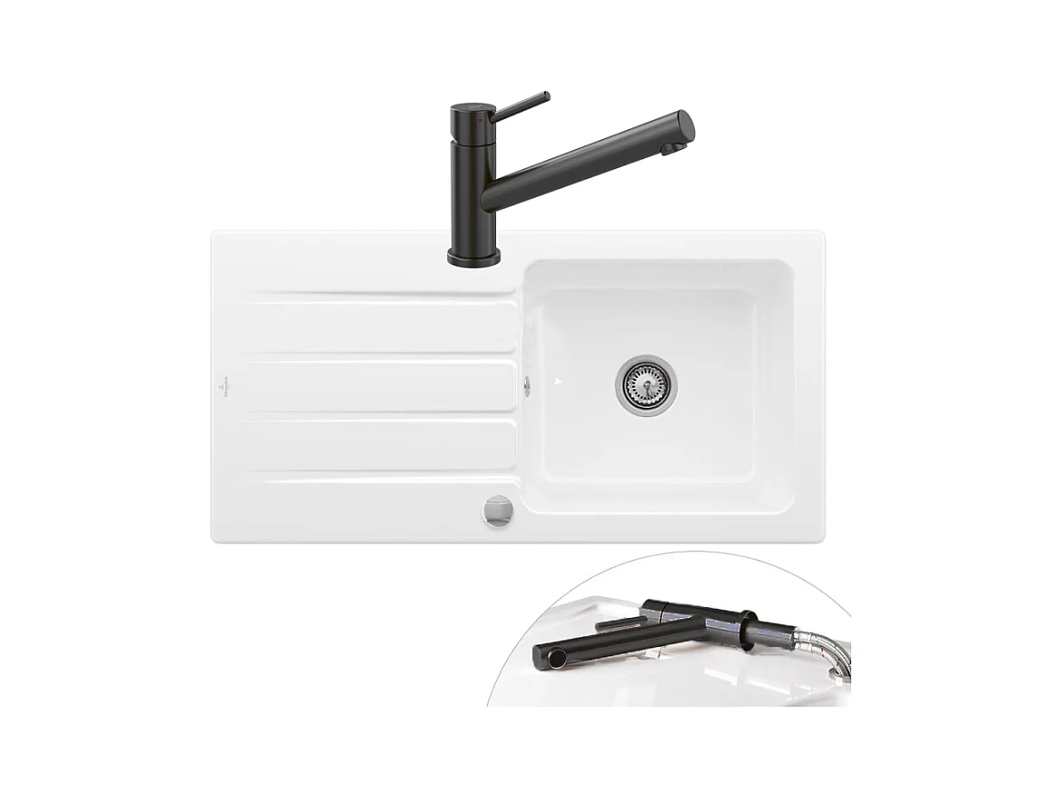 Evier 1 bac VILLEROY ET BOCH Architectura 60 vidage auto + Robinet de cuisine Como Window Anthracite