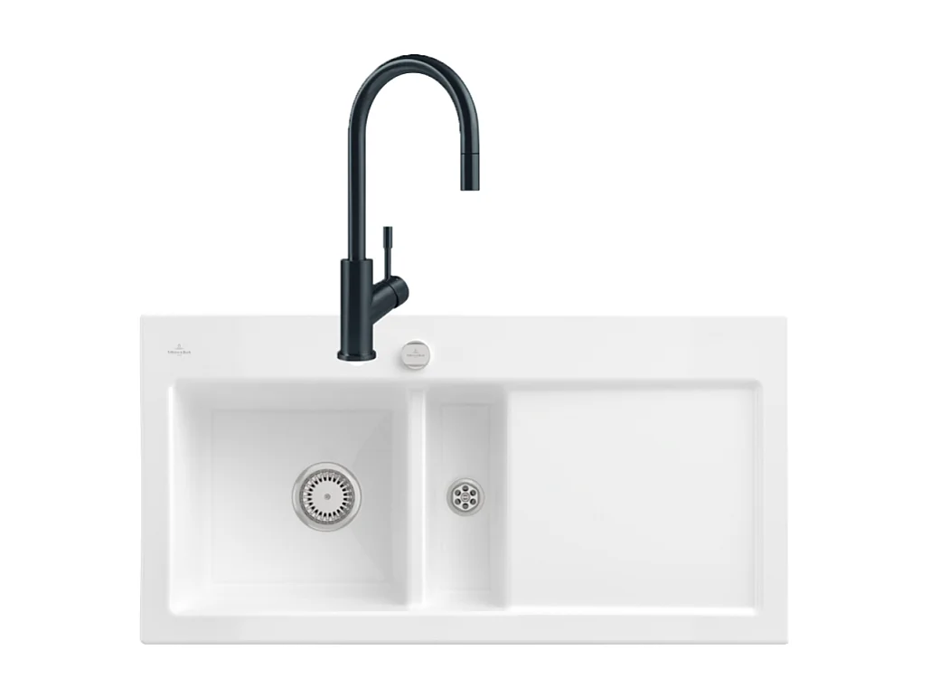 Evier VILLEROY ET BOCH Subway Pure 60 1 bac et demi égouttoir à droite vidage auto + Robinet Umbrella Flex Anthracite