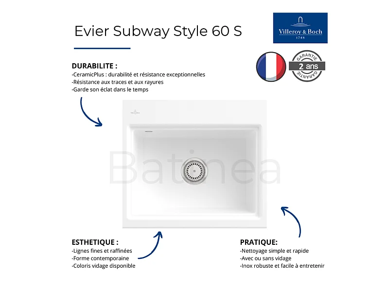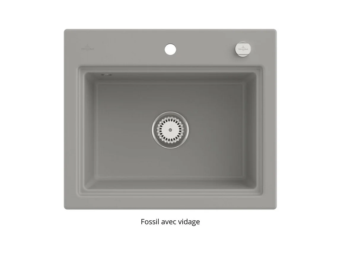 Evier VILLEROY ET BOCH Subway Style 60 S Fossil CeramicPlus vidage automatique finition aluminum brossé