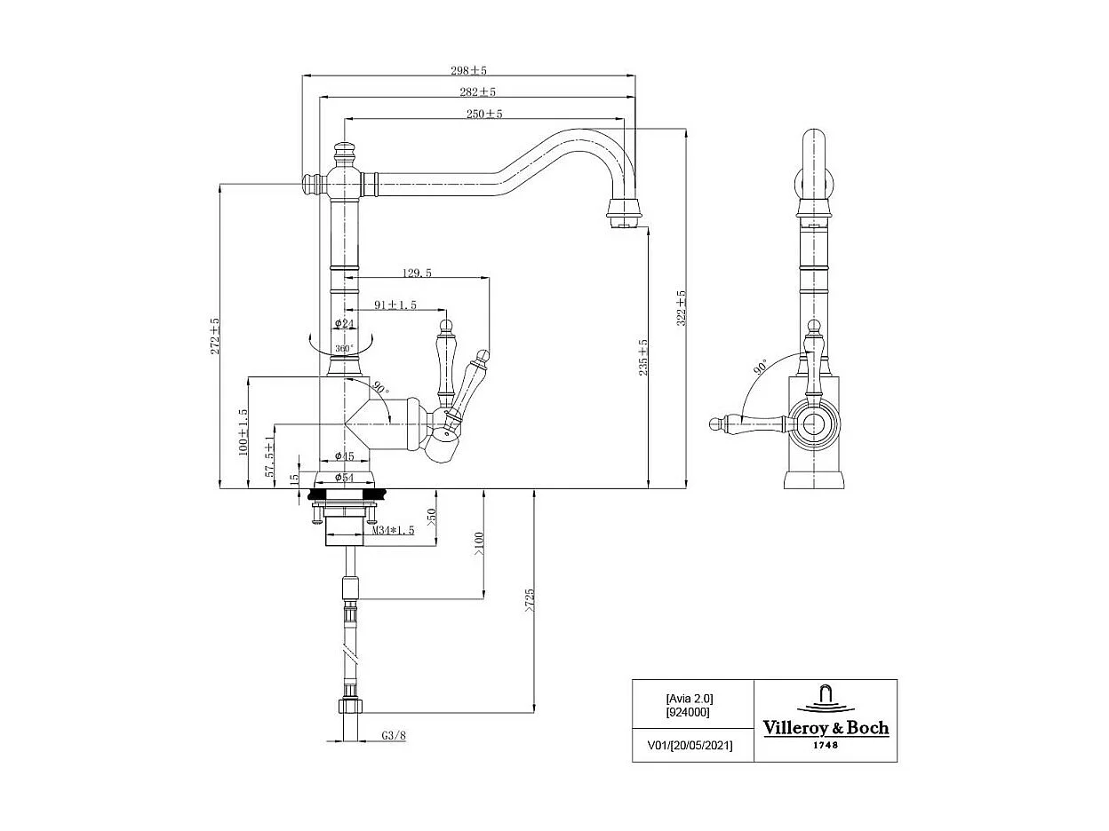 Evier VILLEROY ET BOCH Timbre d'office Tradition 1 bac vidage auto + Robinet de cuisine Avia 2.0 Anthracite