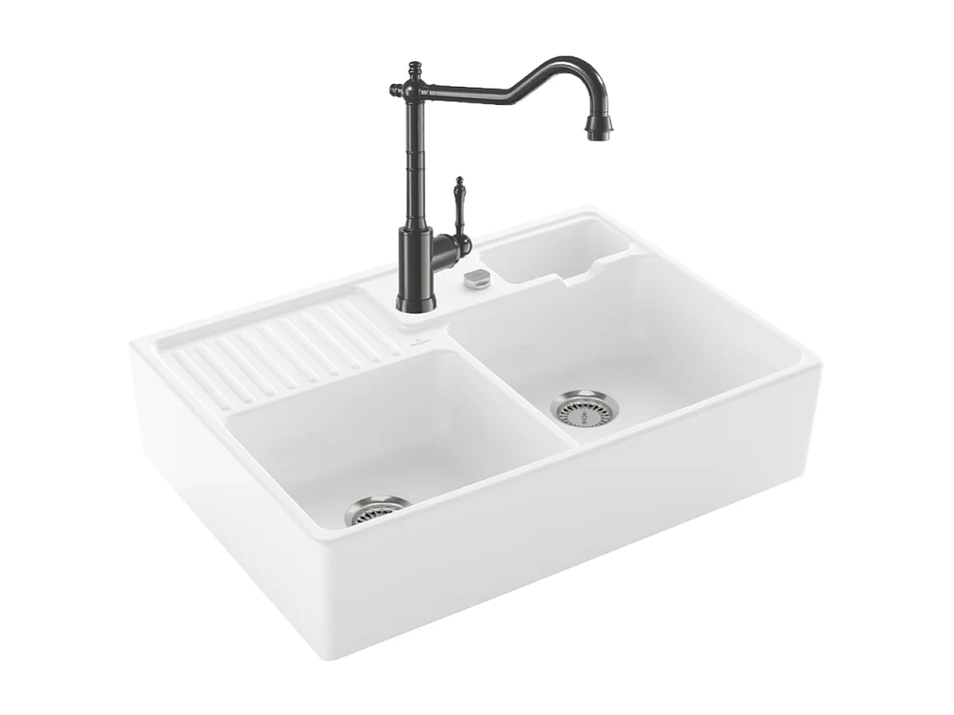 Evier VILLEROY ET BOCH Timbre d'office Tradition 2 bacs vidage auto + Robinet de cuisine Avia 2.0 Anthracite