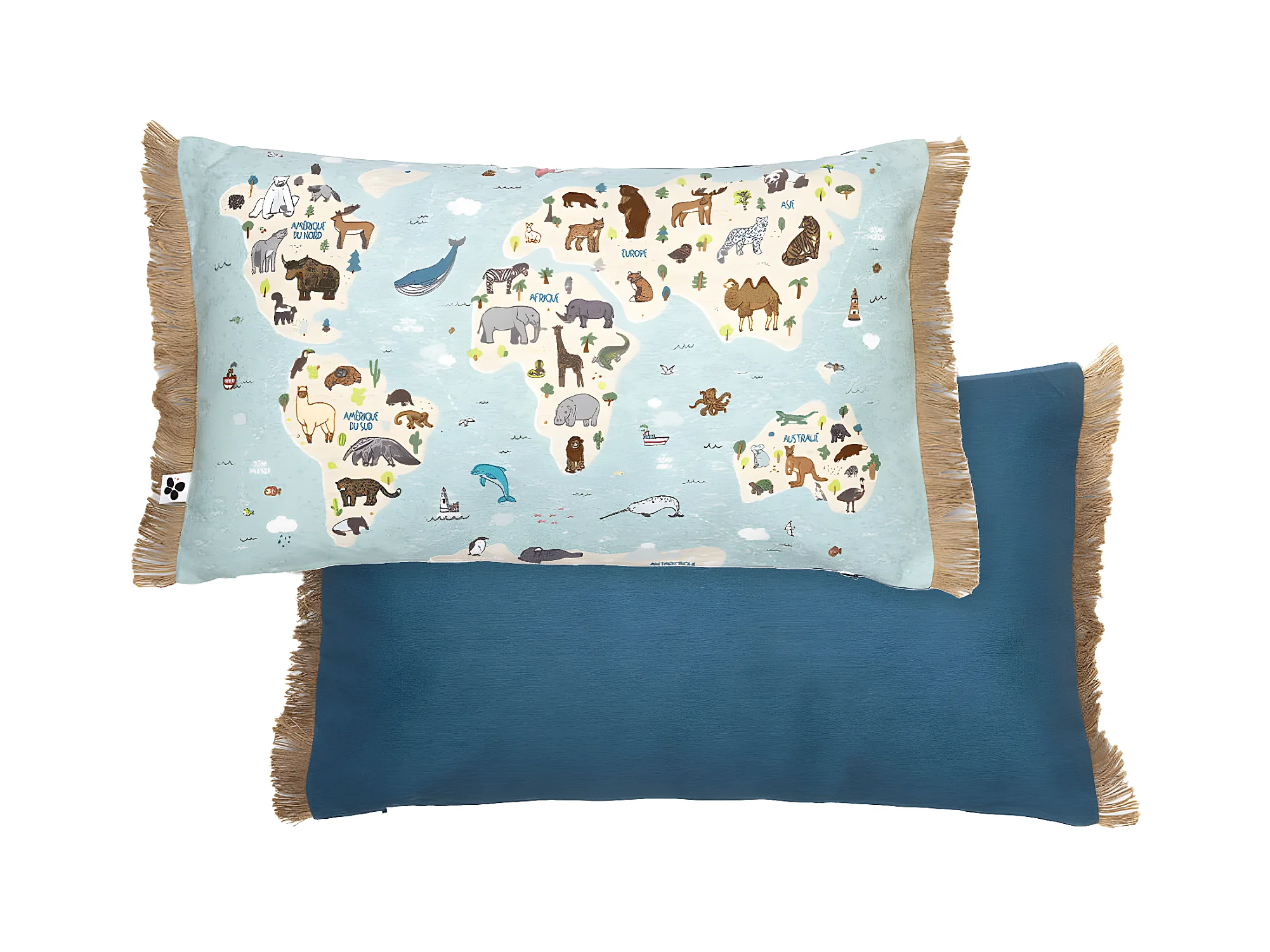 EXPLORE - Coussin Déhoussable à Franges 30x50cm Coton Motif Monde