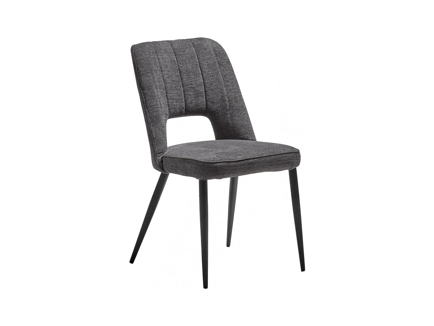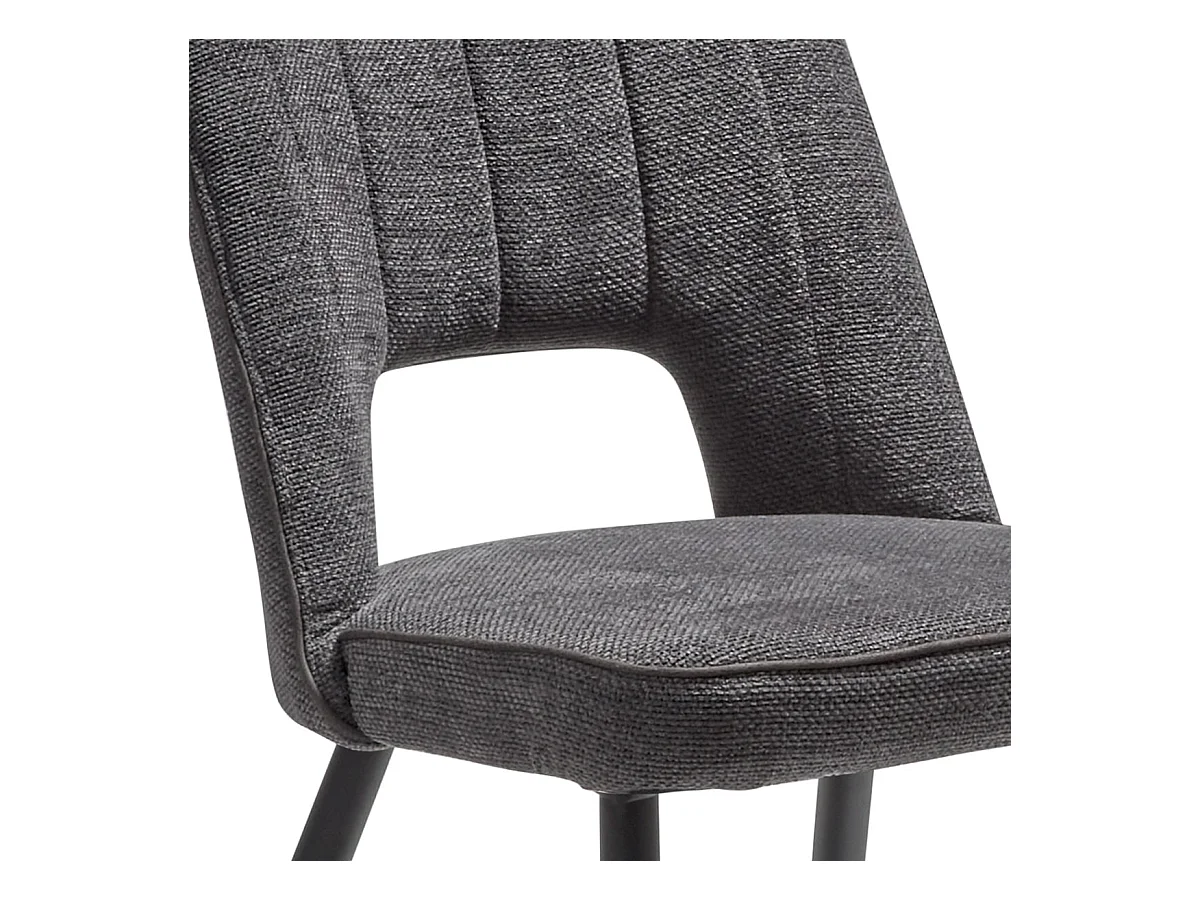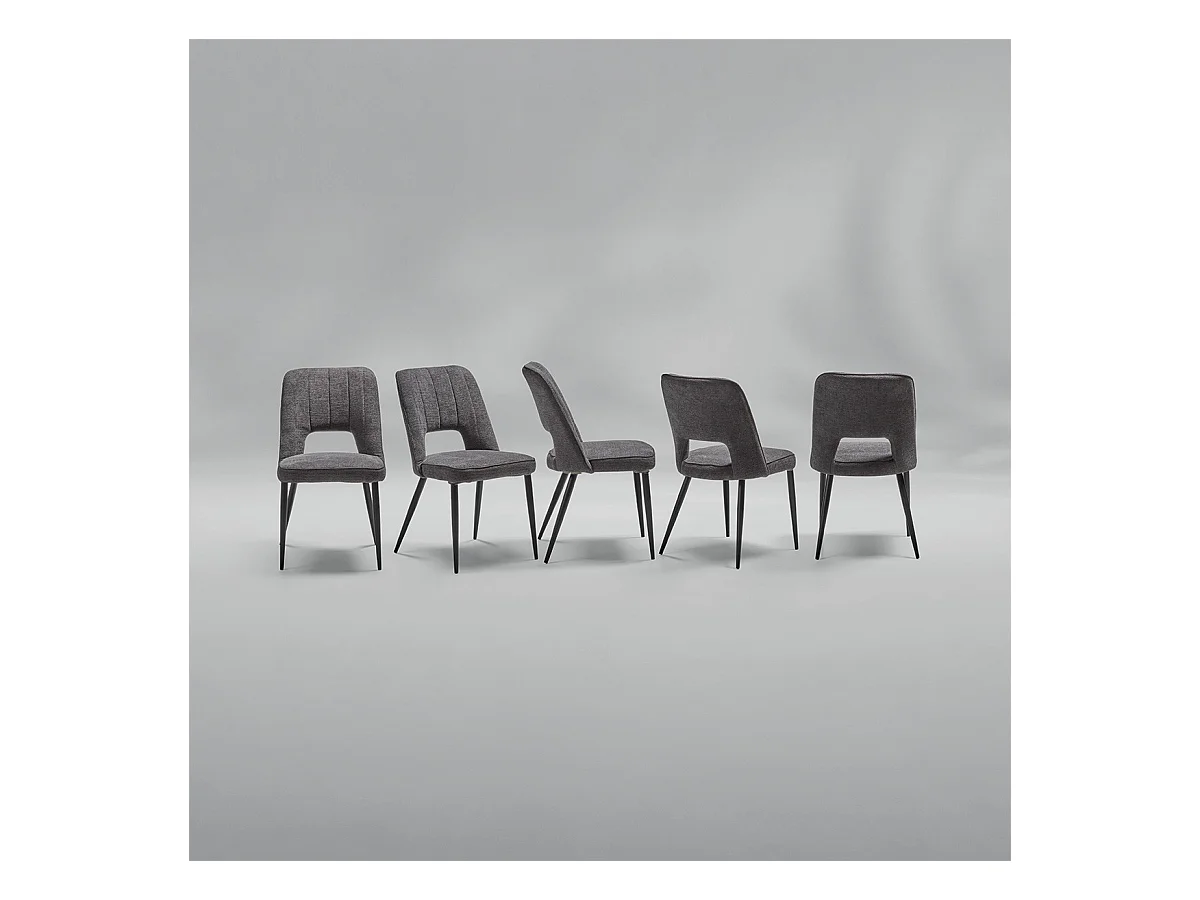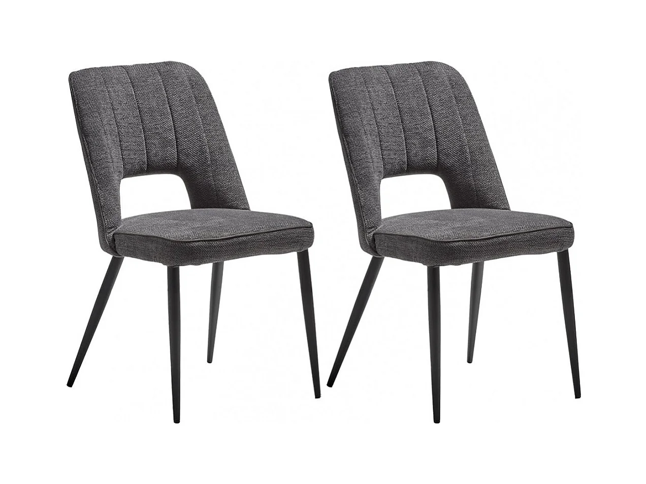 FABRICE - Lot de 2 Chaises Tissu Maille Polyester et Liseré Gris Foncé Chiné