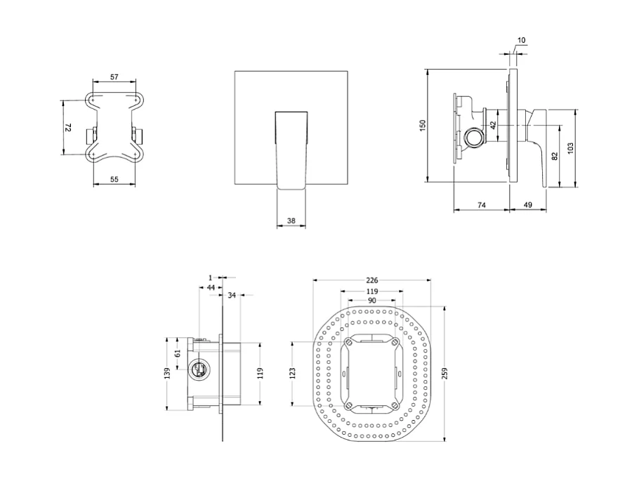 Façade mécanique VILLEROY ET BOCH Architectura Square Chrome + corps encastré