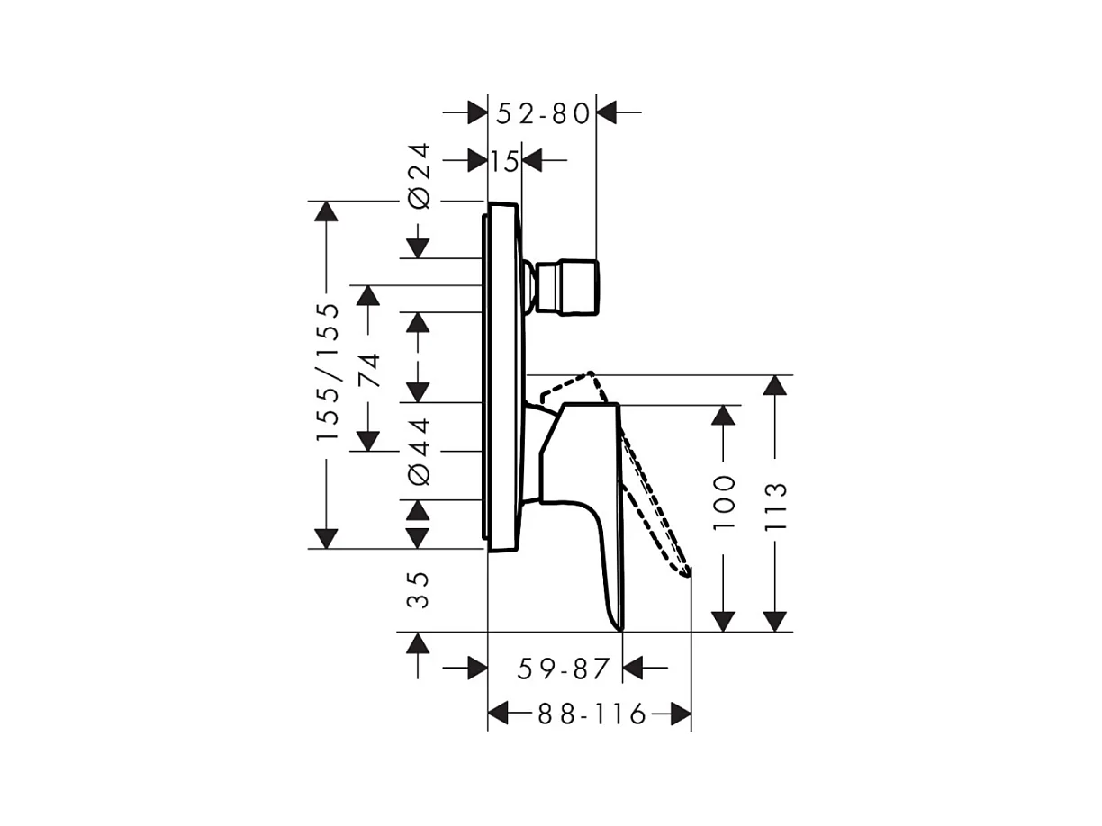 Façade mitigeur bain douche encastré 2 sorties HANSGROHE Talis E aspect doré poli