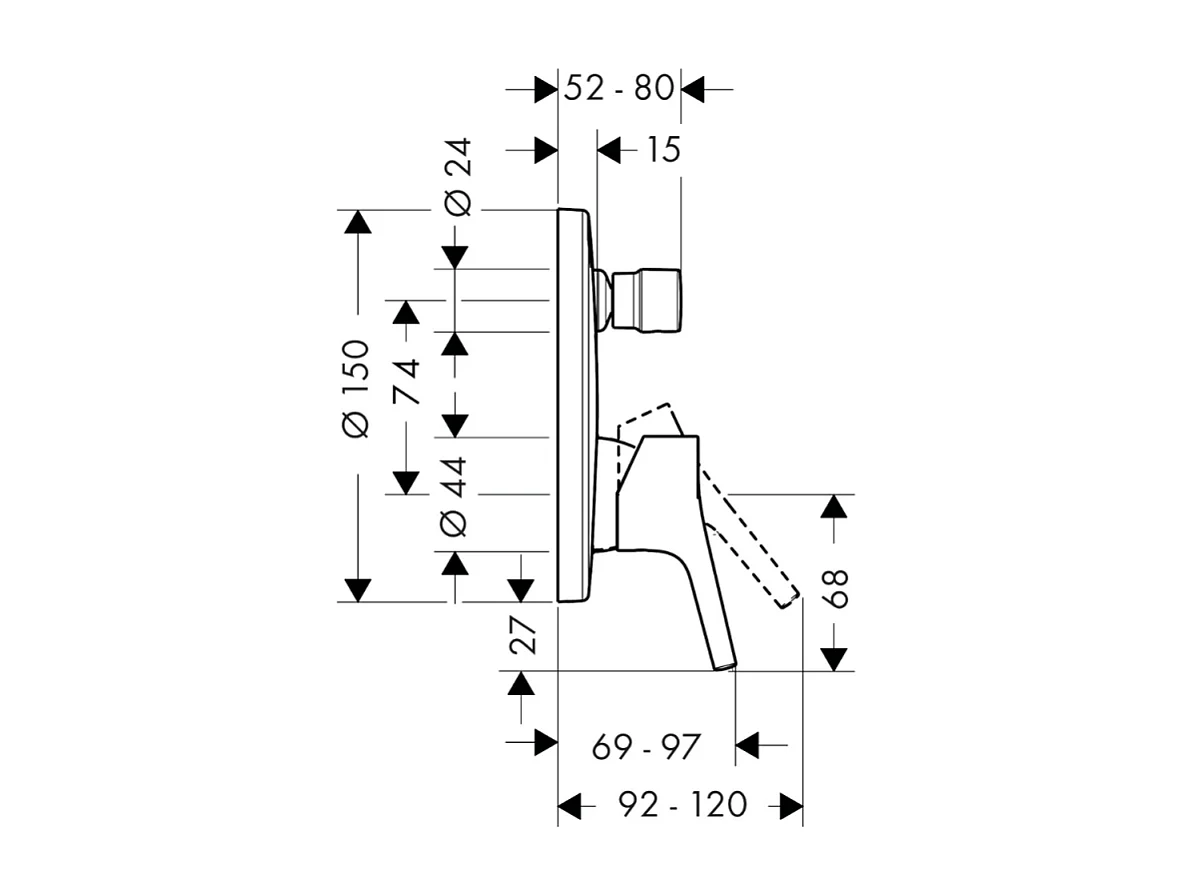 Façade mitigeur bain douche encastré 2 sorties HANSGROHE Talis S chromé