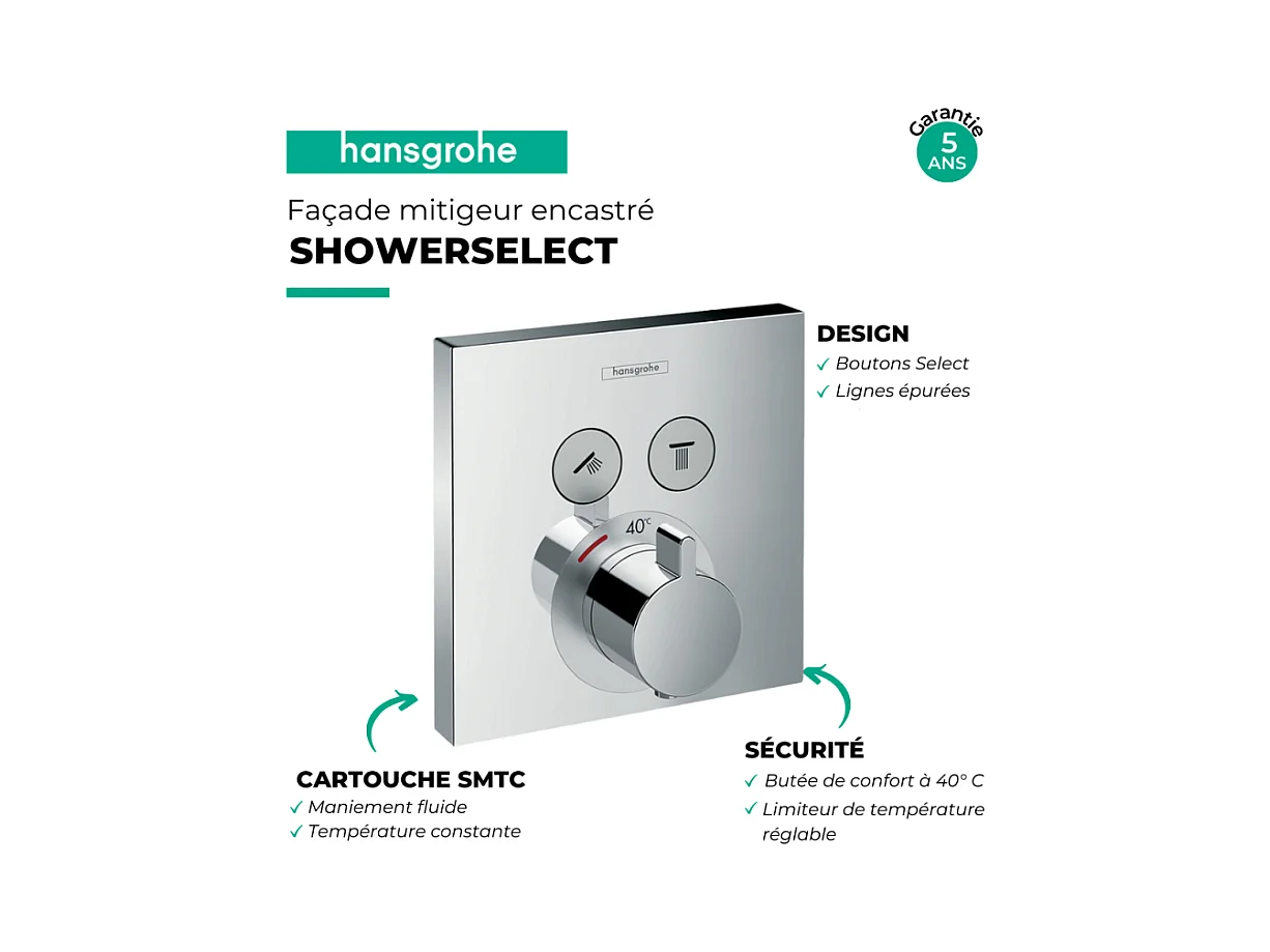 Façade pour mitigeur thermostatique encastré HANSGROHE ShowerSelect avec 2 fonctions chromé et corps encastré iBox