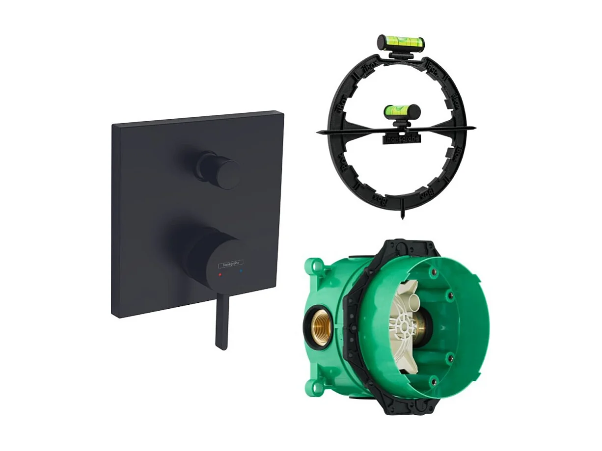 Façade robinet encastré mécanique HANSGROHE Finoris 2 sorties Noir mat + Corps encastré universel iBox + Outil d'aide au montage