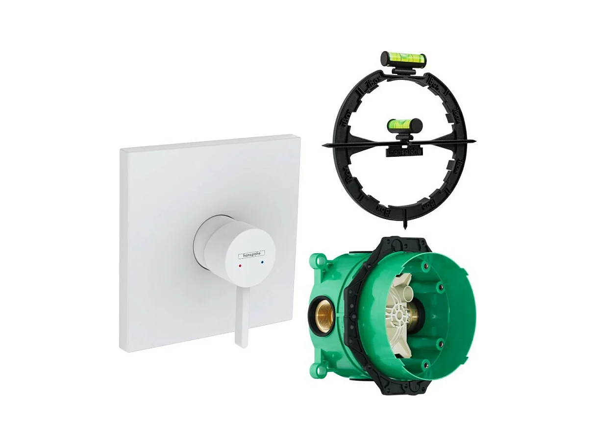 Façade robinet encastré mécanique HANSGROHE Finoris Blanc mat + Corps encastré universel iBox + Outil d'aide au montage