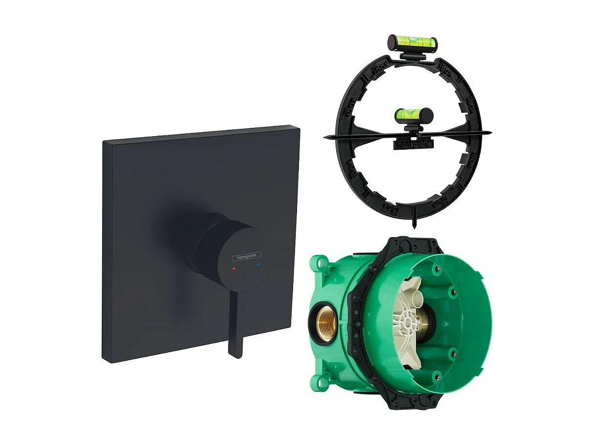 Façade robinet encastré mécanique HANSGROHE Finoris Noir mat + Corps encastré universel iBox + Outil d'aide au montage